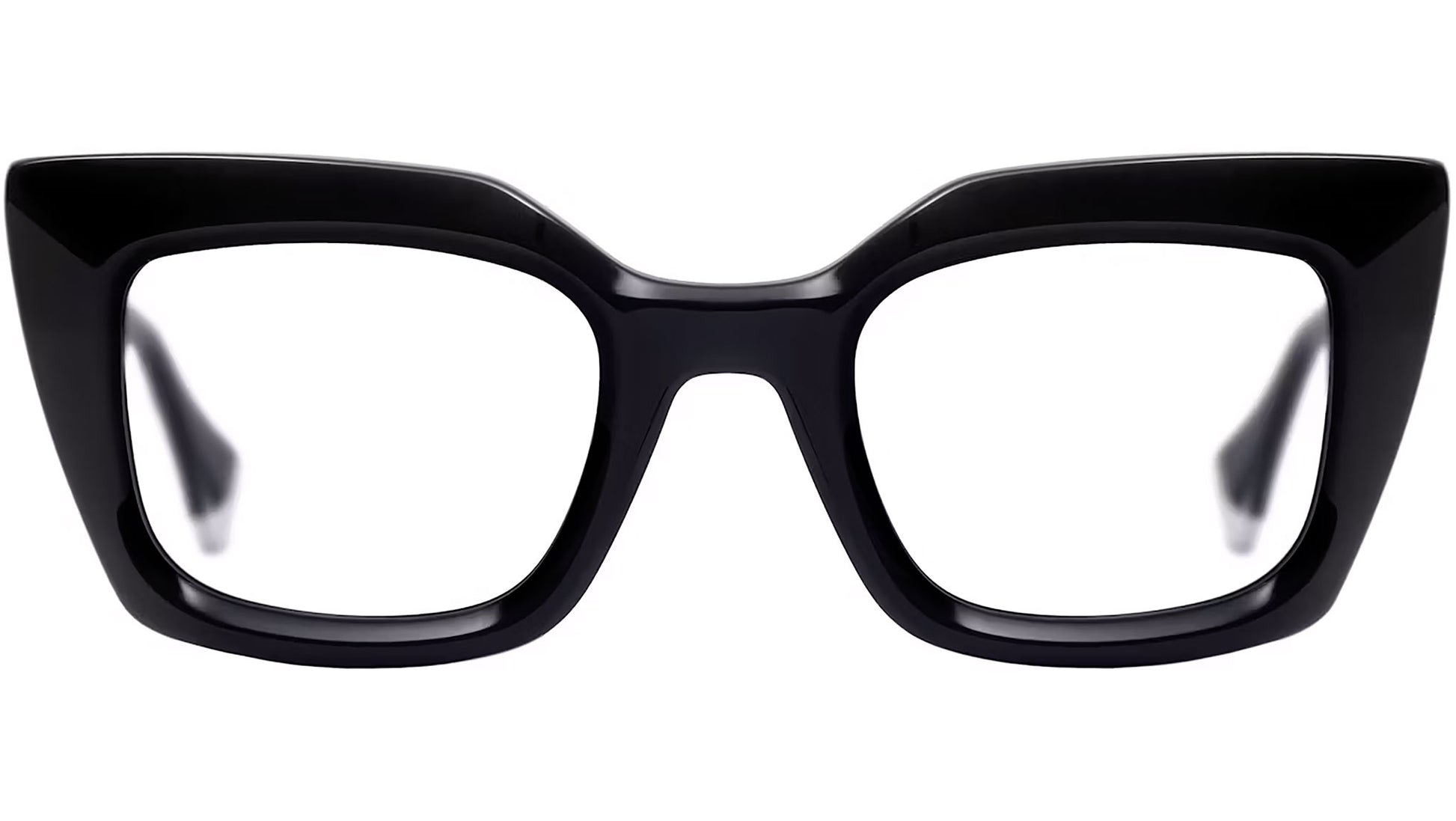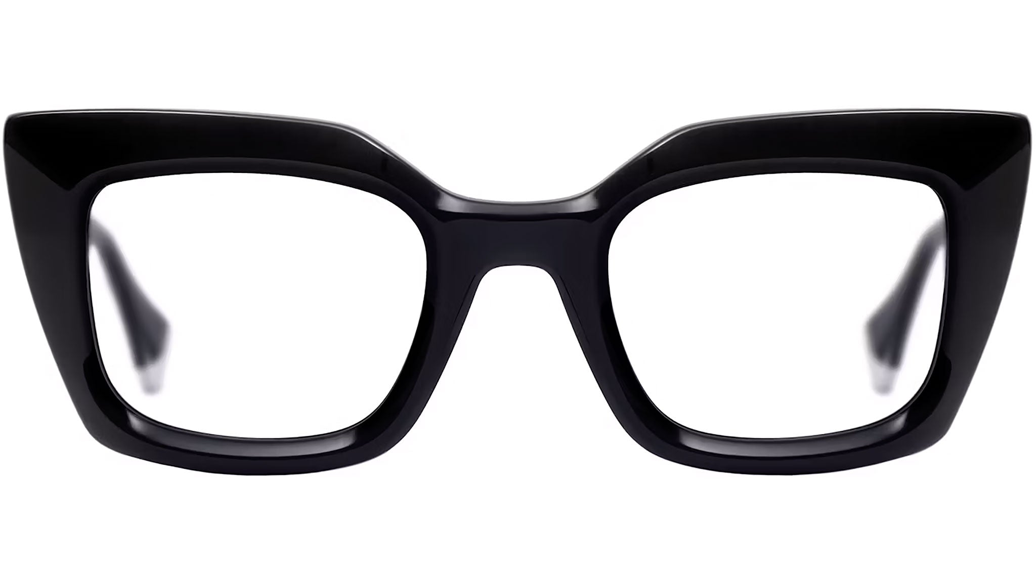 Gigi Studios Eyewar optical frame model 64990 Mia color code 1 in black. A classic cat eye full rim acetate glasses with transparent demo lens. Gigi Studios Eyewear ensures the highest quality through their meticulous selection of materials, partnering with top suppliers from Italy, Germany, and Japan. These collaborations guarantee a blend of sophistication, sustainability, and superior craftsmanship in every piece.
