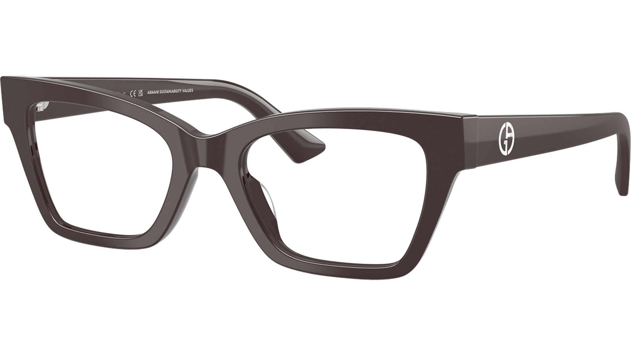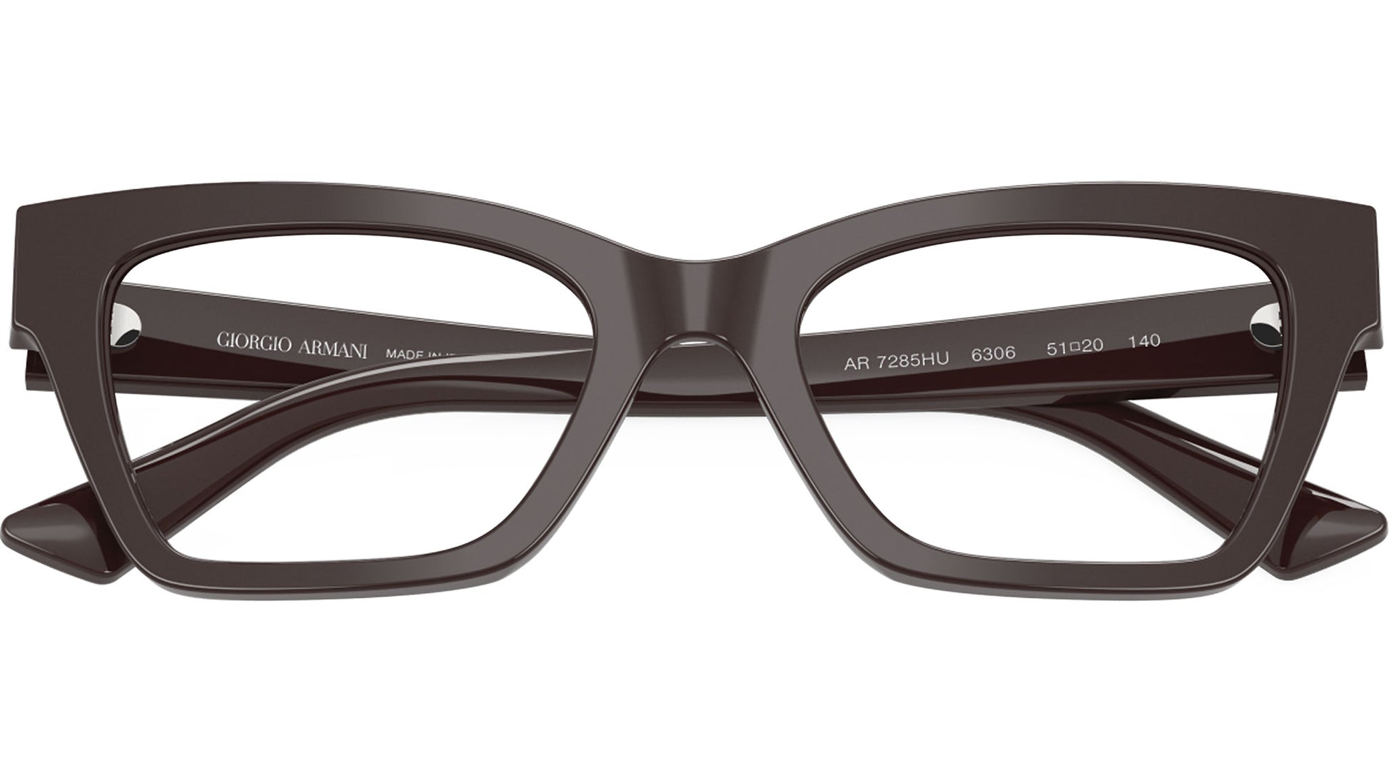 Giorgio Armani AR 7285HU 6306 glasses, featuring purple cat eye acetate frame and demo lenses. Universal fit. Brand line: Armani Code. Style code: 0AR7285HU. Color code: 6306. Authorized Giorgio Armani online reseller. Your glasses will include the original case and accessories and are covered by a 12-month global warranty.