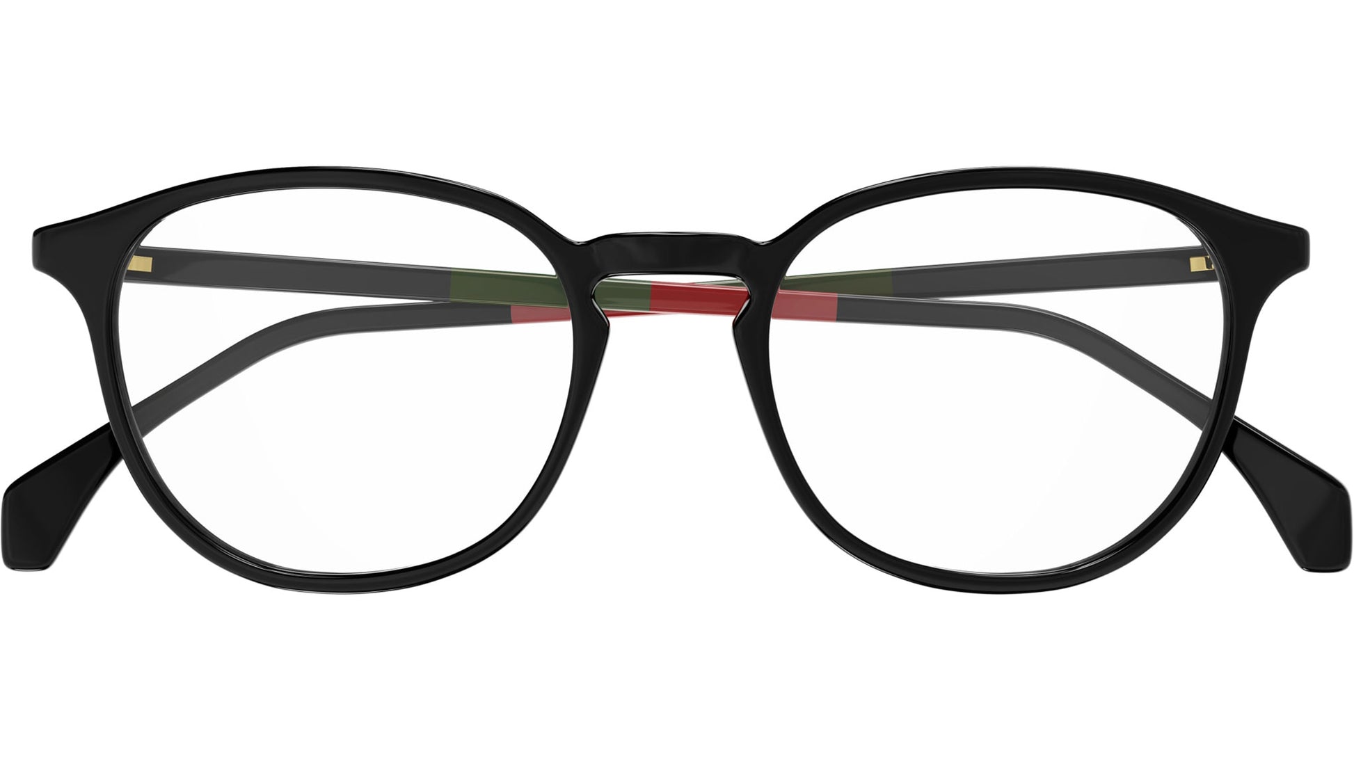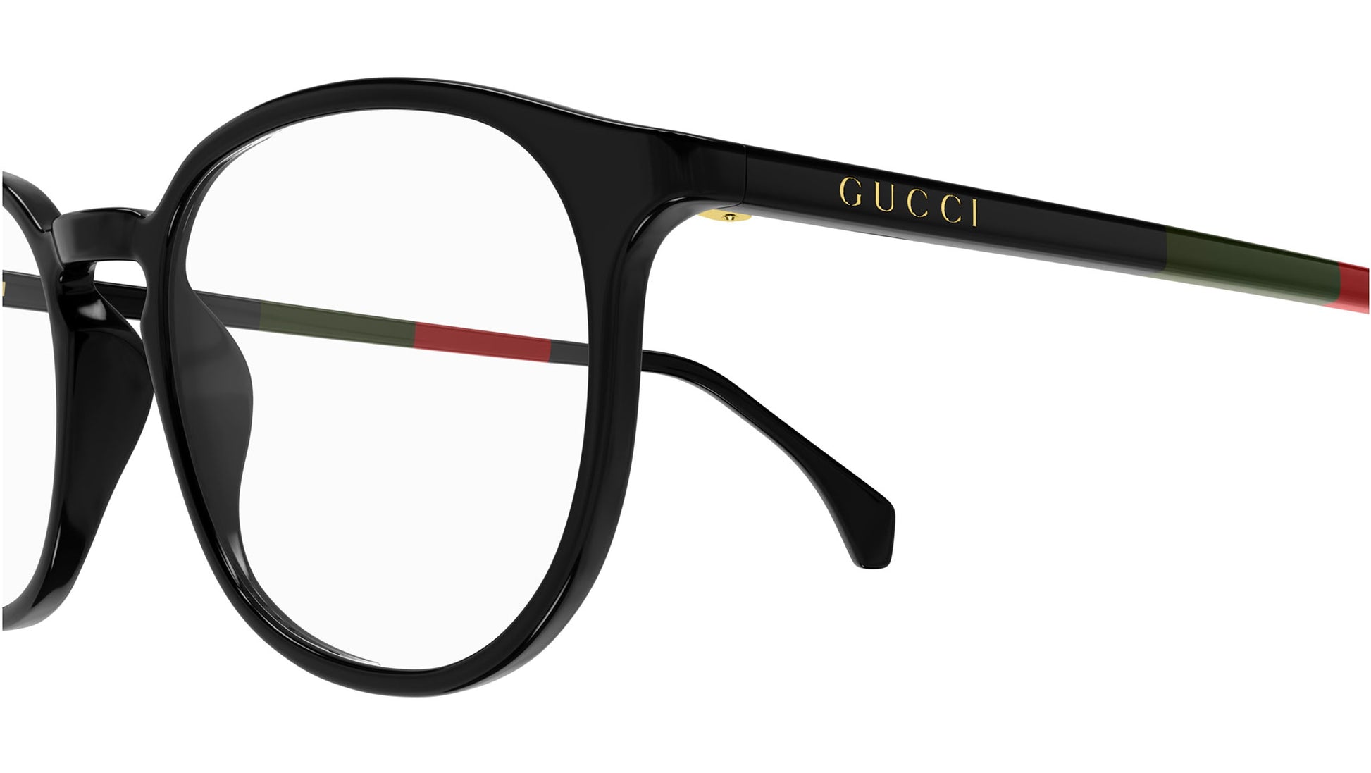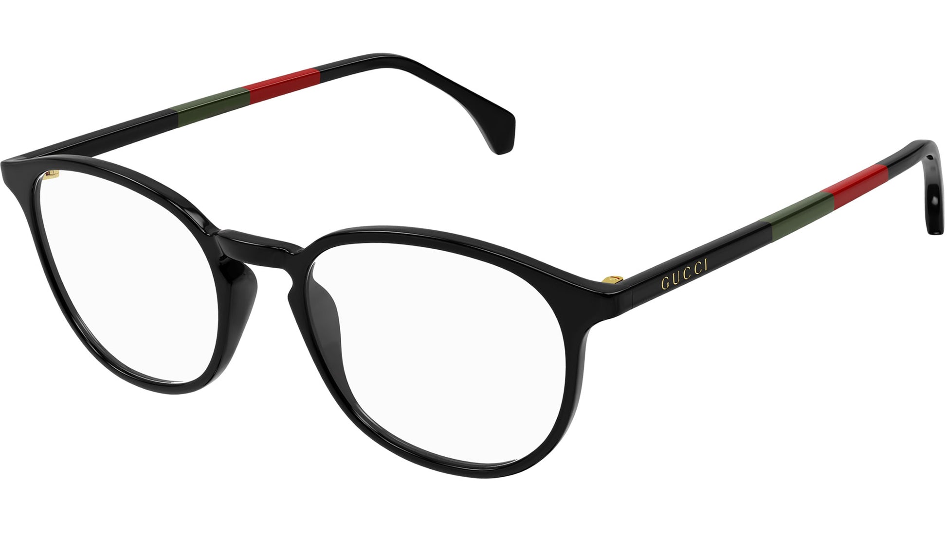 Gucci GG0551O 021 glasses for men, featuring shiny solid black panthos acetate frame and demo lenses. Brand line: GG Logo. Style code: GG0551O. Color code: 021. Made in Italy. Authorized Gucci online reseller. Your glasses will include the original case and accessories and are covered by a 12-month global warranty.