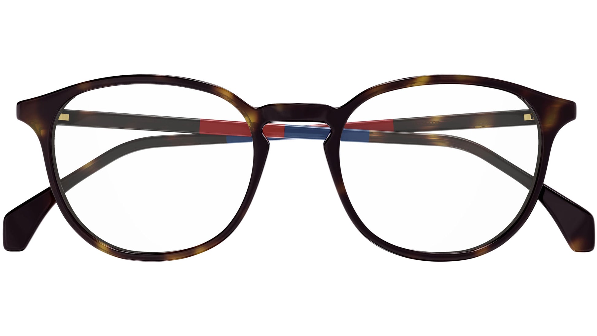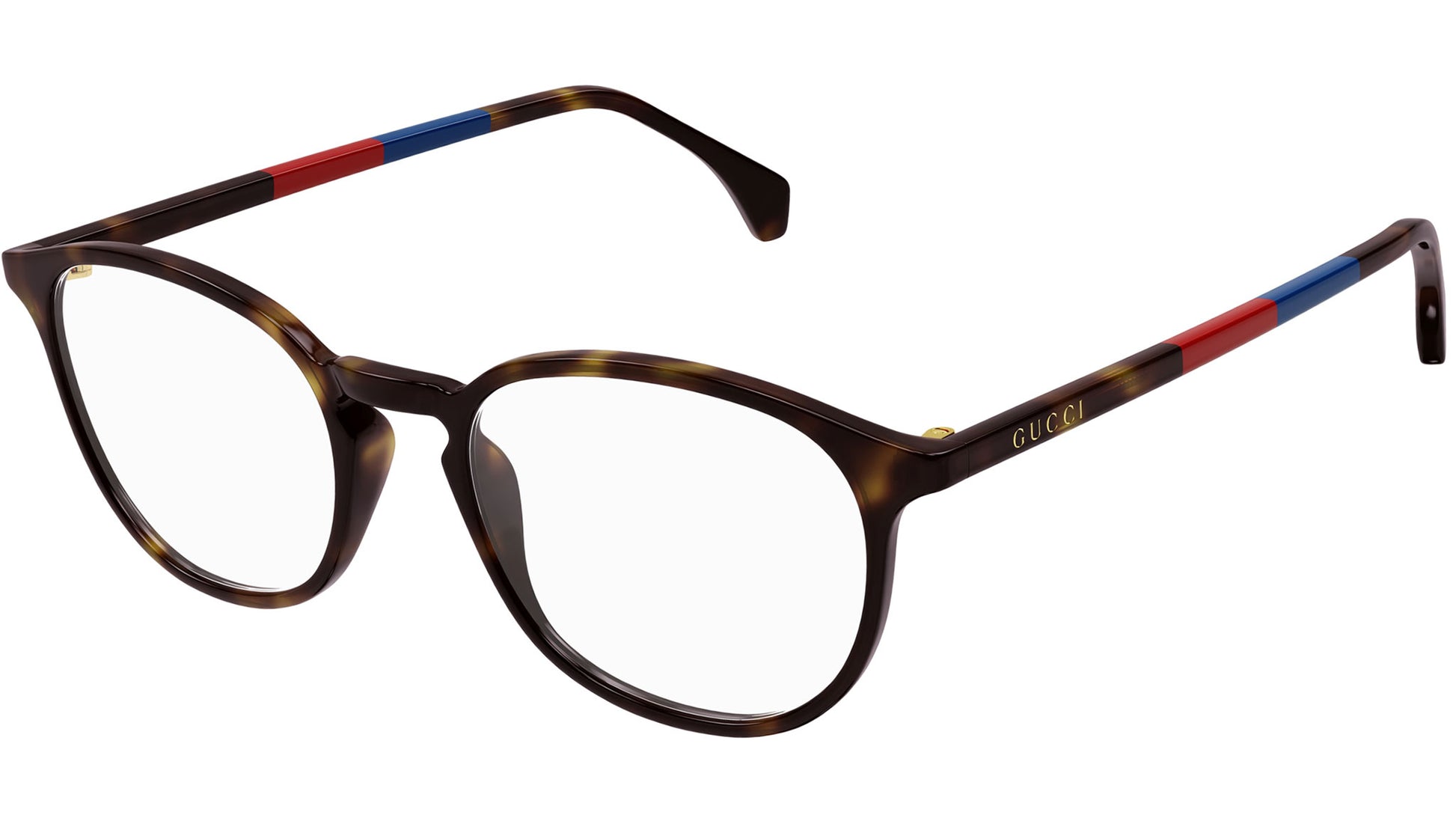 Gucci GG0551O 022 glasses for men, featuring shiny dark havana panthos acetate frame and demo lenses. Brand line: GG Logo. Style code: GG0551O. Color code: 022. Made in Italy. Authorized Gucci online reseller. Your glasses will include the original case and accessories and are covered by a 12-month global warranty.