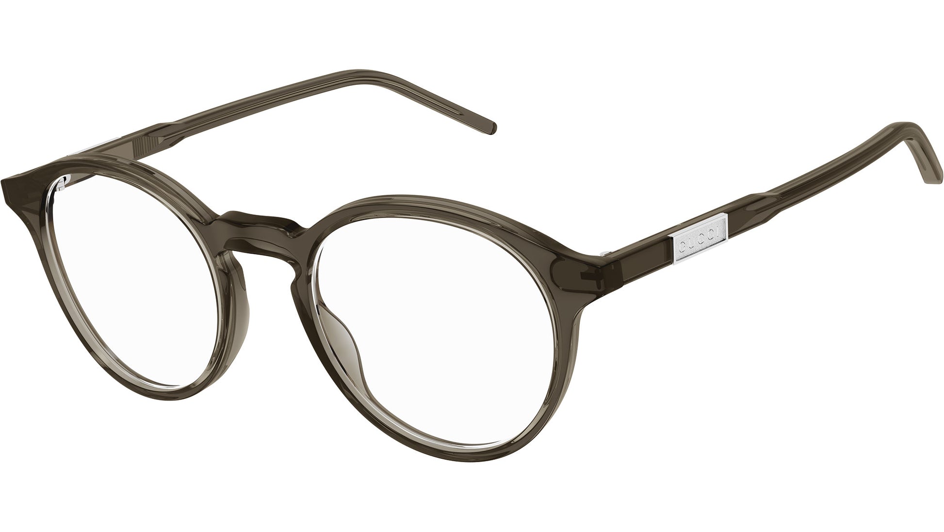 Gucci Gucci Logo optical collection model GG1160O 002 featuring shiny transparent brown frame and brown temple. Gucci Eyewear offer eclectic and contemporary creations that represent the pinnacle of Italian craftsmanship and are unsurpassed in quality, attention to detail and imaginative design. Buy your frames online and take them to your local optician to fit prescription lenses.
