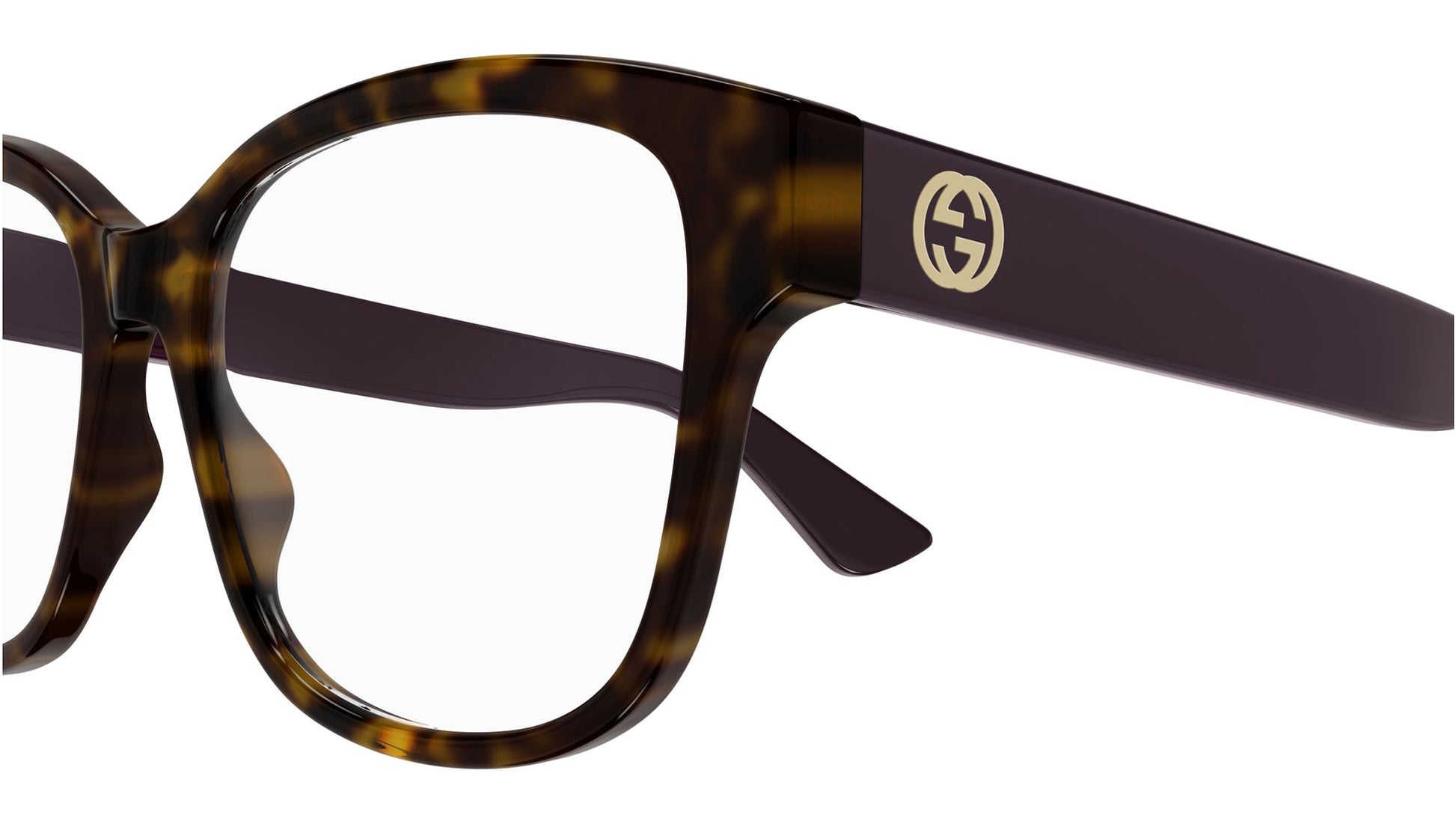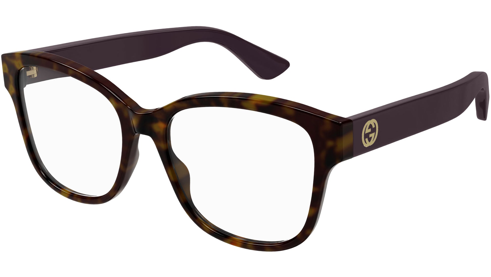 Gucci GG1340O 008 glasses for women, featuring shiny dark havana rectangular injection frame and demo lenses. Brand line: Gucci Logo. Style code: GG1340O. Color code: 008. Made in Italy. Authorized Gucci online reseller. Your glasses will include the original case and accessories and are covered by a 12-month global warranty.