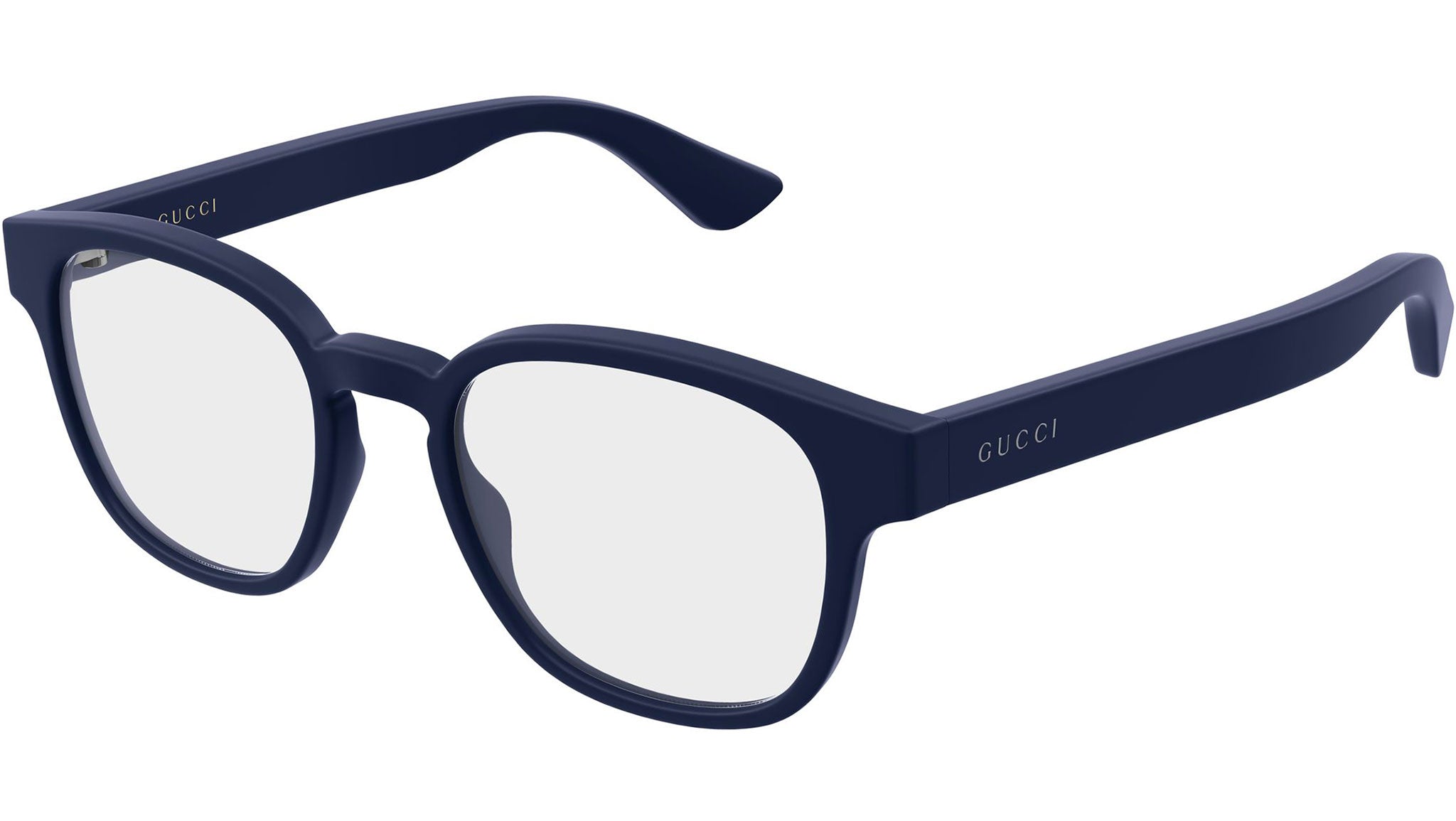 Gucci GG1343O 009 glasses for men, featuring matte solid dark blue panthos injection frame and demo lenses. Brand line: Institutional Logo. Style code: GG1343O. Color code: 009. Made in Italy. Authorized Gucci online reseller. Your glasses will include the original case and accessories and are covered by a 12-month global warranty.