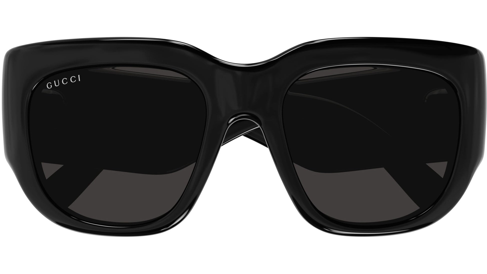 Gucci GG Logo sunglasses model GG1545S rectangle injection frame color code 001 shiny black with black temple and solid grey lens.