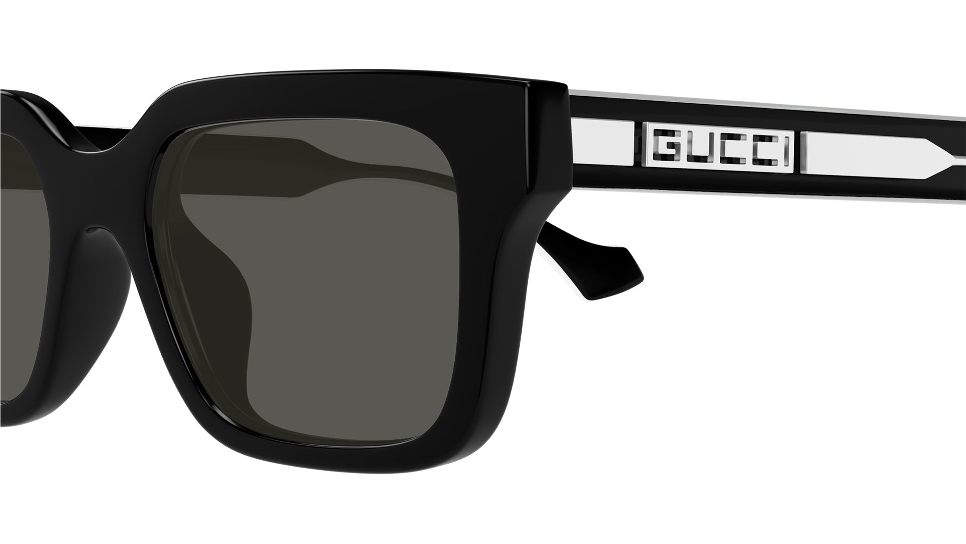 Gucci sunglasses model GG1732SK Lettering line rectangle injection frame color code 001 shiny black with crystal temple and solid grey lenses. Authorized Gucci online reseller. Your glasses will come with the original case and accessories and will be covered by a 12-month global warranty.