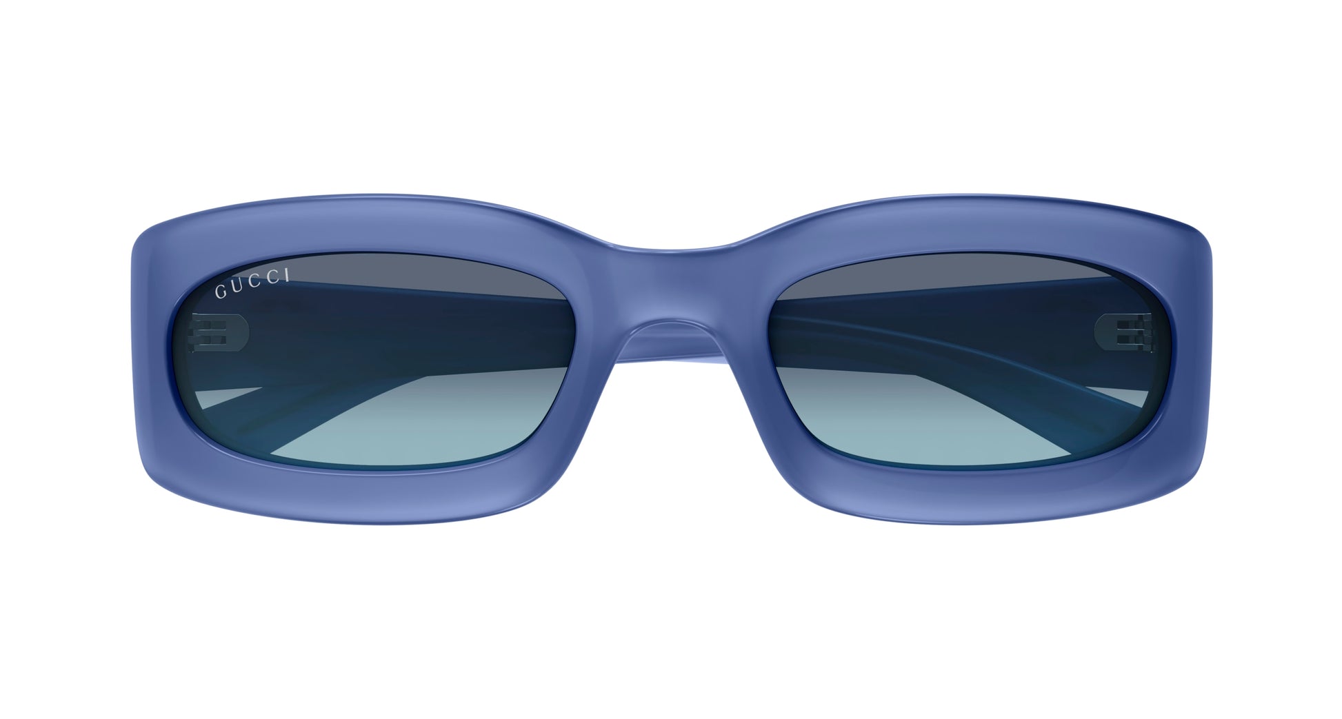 Gucci GG1786S 004 sunglasses for men, featuring matte milky electric blue panthos injection frame and double gradient smoke + blue bio nylon lenses. Brand line: Emblem. Style code: GG1786S. Color code: 004. Made in Italy. Authorized Gucci online reseller. Your glasses will include the original case and accessories and are covered by a 12-month global warranty.