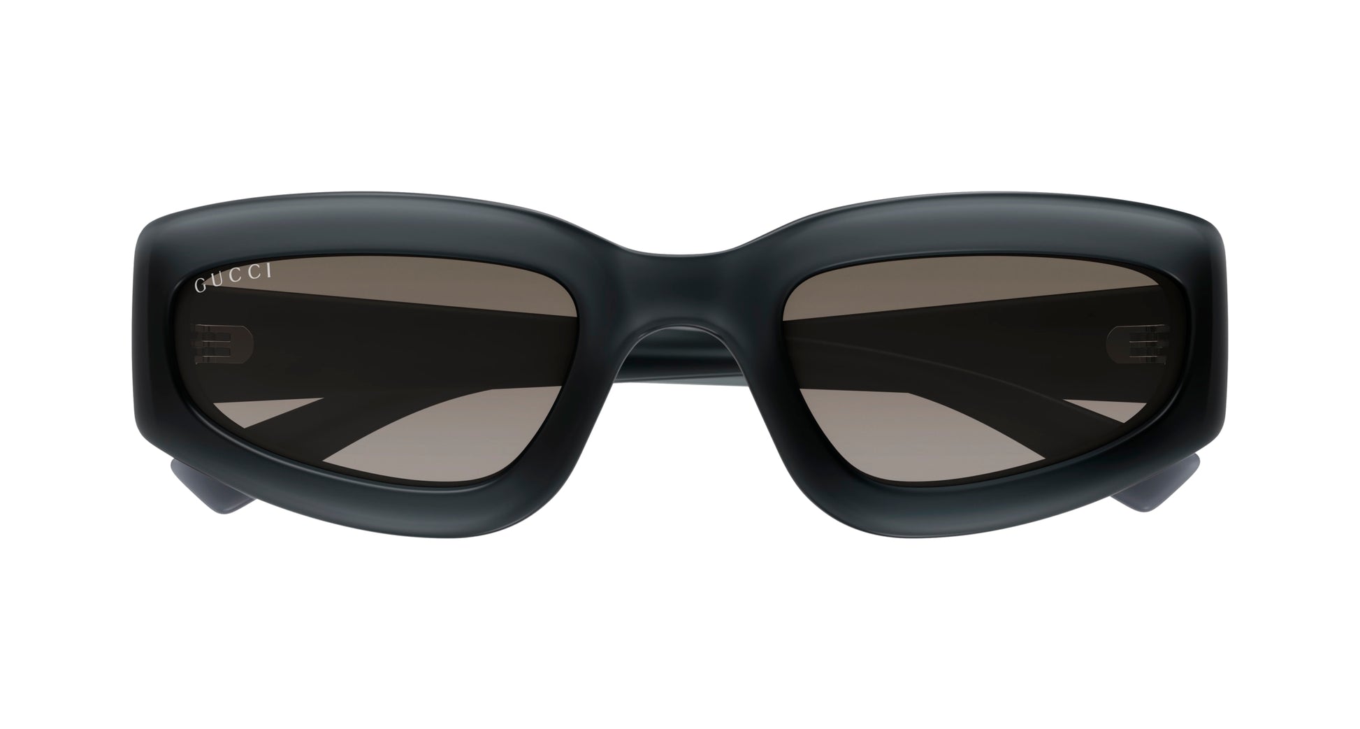 Gucci GG1787S 001 sunglasses for men, featuring matte milky dark grey rectangular injection frame and double gradient grey + light grey bio nylon lenses. Brand line: Emblem. Style code: GG1787S. Color code: 001. Made in Italy. Authorized Gucci online reseller. Your glasses will include the original case and accessories and are covered by a 12-month global warranty.
