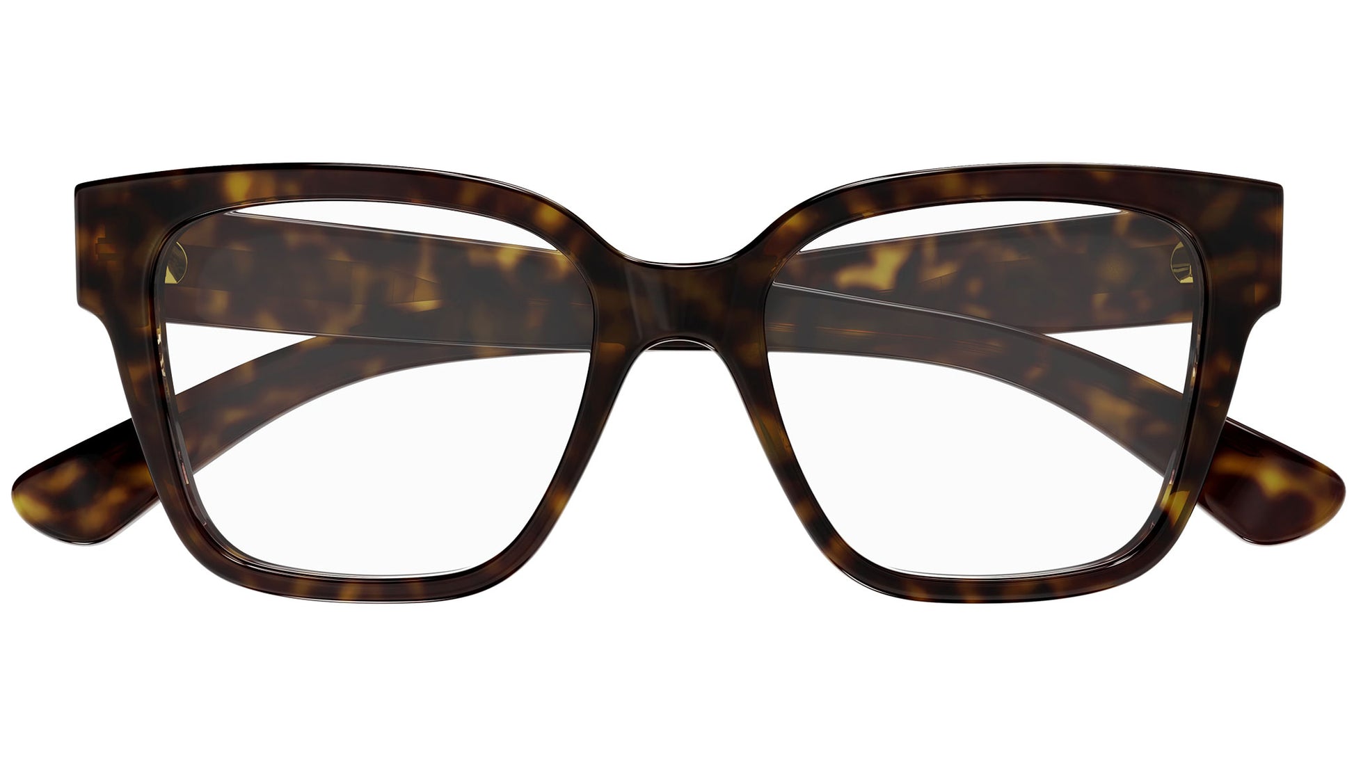 Gucci GG1791O glasses for women, featuring shiny dark havana rectangular recycled acetate frame and demo lenses. Brand line: Name Of Brand. Style code: GG1791O. Color code: size 53: 006. Size 46: 003. Made in Italy. Authorized Gucci online reseller. Your glasses will include the original case and accessories and are covered by a 12-month global warranty.