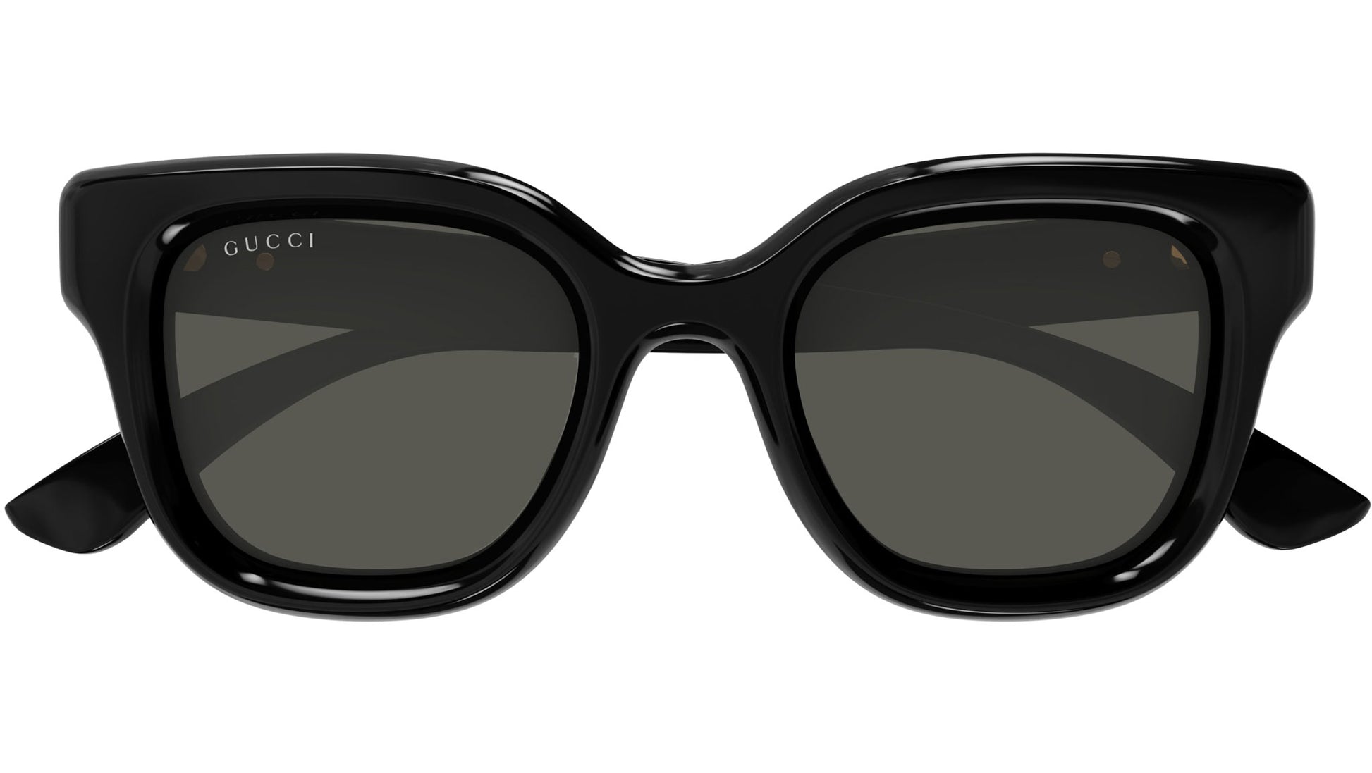 Gucci GG1828S 001 sunglasses for women, featuring shiny black panthos injection frame and solid grey bio nylon lenses. Brand line: GG Logo. Style code: GG1828S. Color code: 001. Made in Italy. Authorized Gucci online reseller. Your glasses will include the original case and accessories and are covered by a 12-month global warranty.