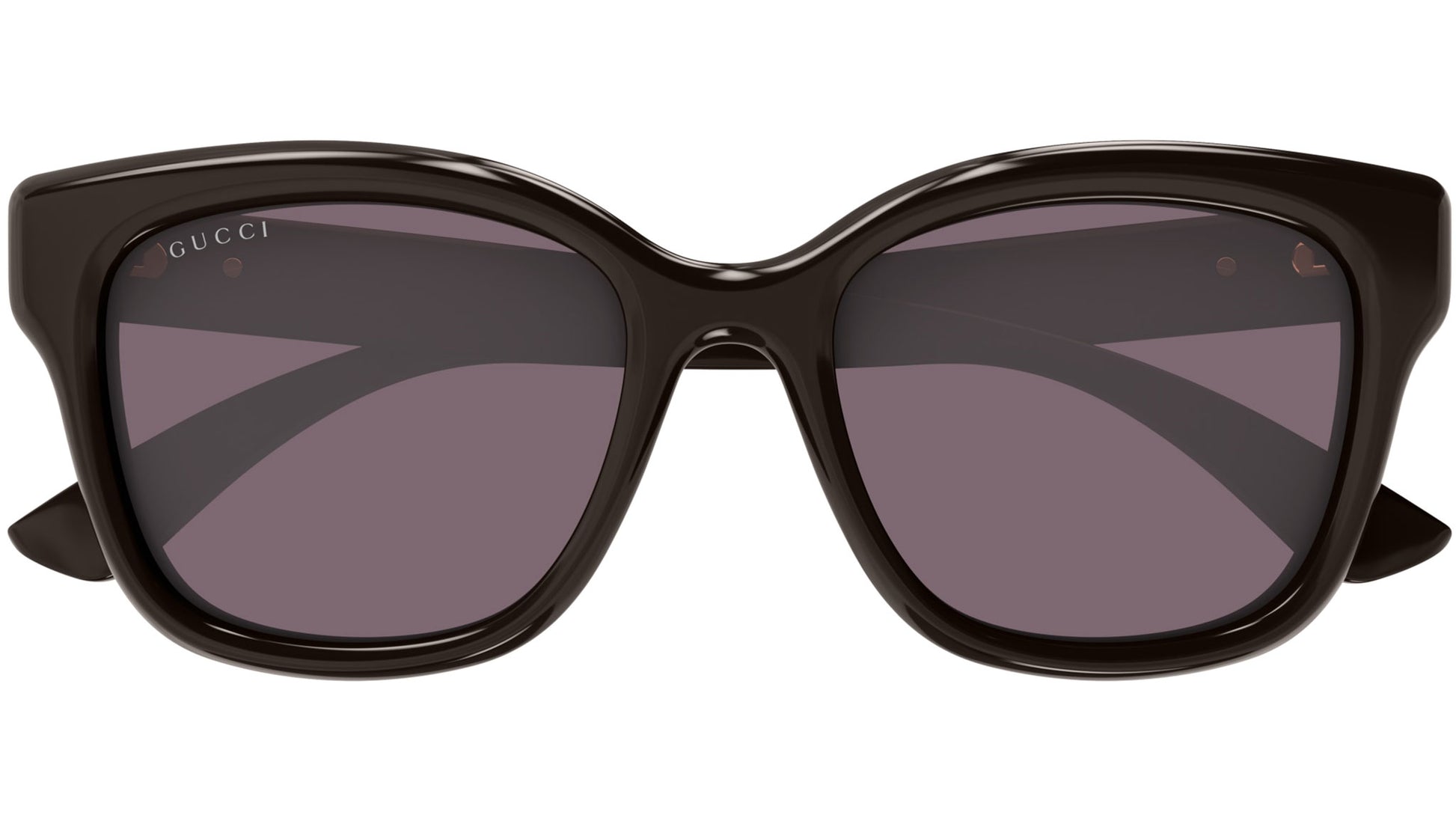 Gucci GG1830SK 004 sunglasses for women, featuring shiny solid brown rectangular injection frame and solid lilac bio nylon lenses. Brand line: GG Logo. Style code: GG1830SK. Color code: 004. Made in Italy. Authorized Gucci online reseller. Your glasses will include the original case and accessories and are covered by a 12-month global warranty.