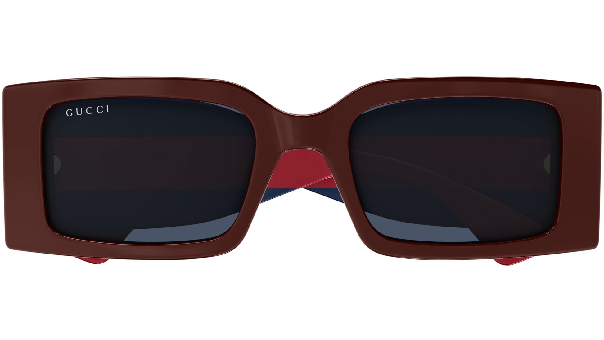 Gucci GG1860S 003 sunglasses for women, featuring shiny solid burgundy rectangular recycled acetate frame and solid grey blue bio nylon lenses. Brand line: Web. Style code: GG1860S. Color code: 003. Made in Japan. Authorized Gucci online reseller. Your glasses will include the original case and accessories and are covered by a 12-month global warranty.