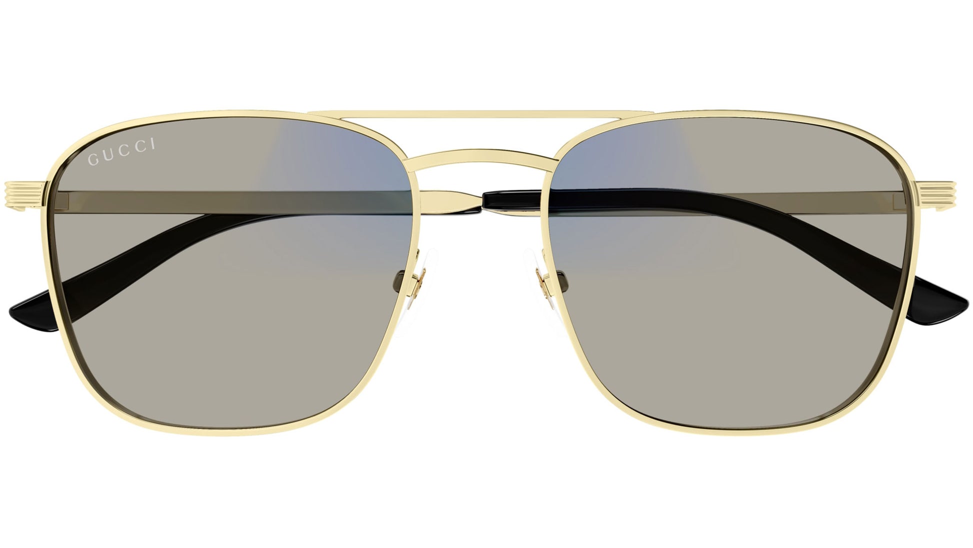 Gucci GG1881S 005 sunglasses for men, featuring shiny endura gold rectangular metal frame and demo to grey photocromic + ar mac 4 blue reducer Trivex lenses. Brand line: Lettering. Style code: GG1881S. Color code: 005. Made in Italy. Authorized Gucci online reseller. Your glasses will include the original case and accessories and are covered by a 12-month global warranty.