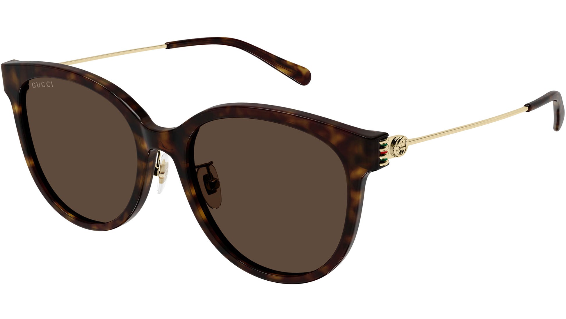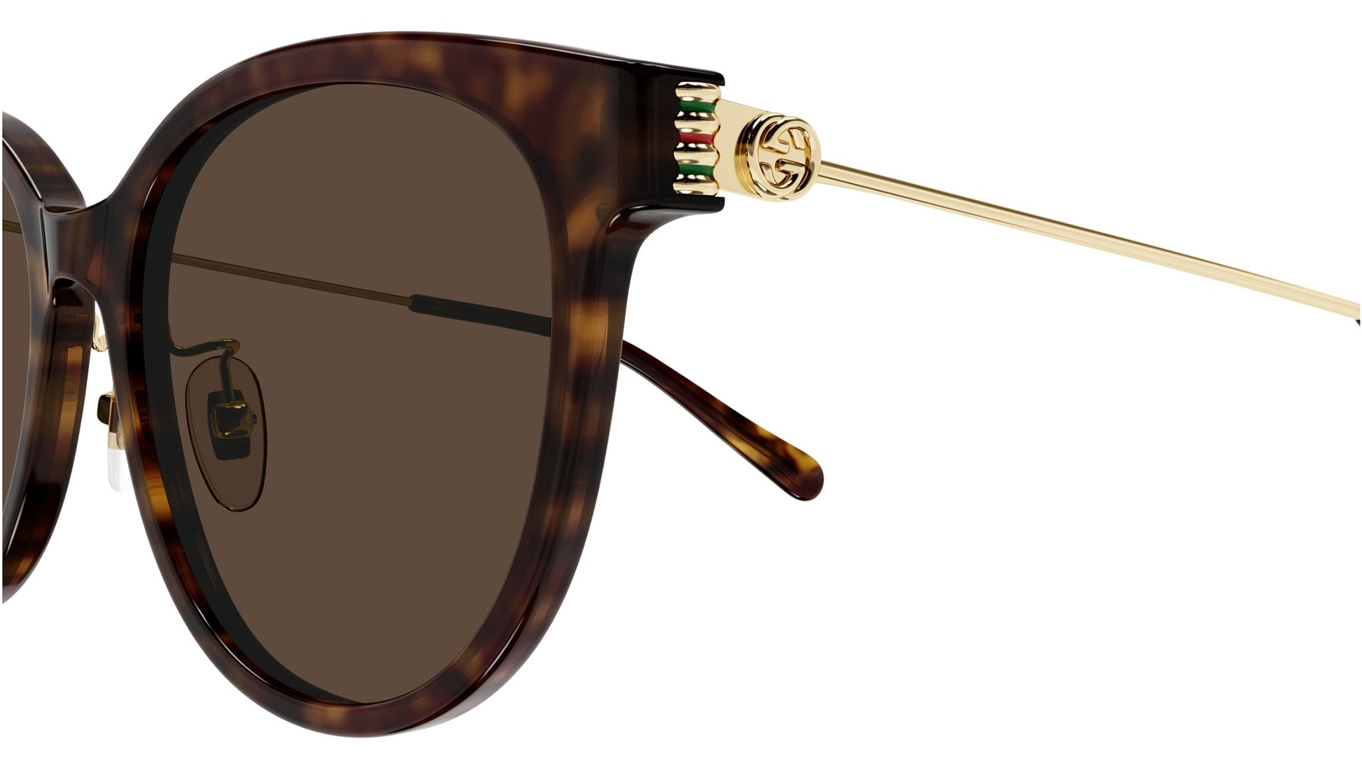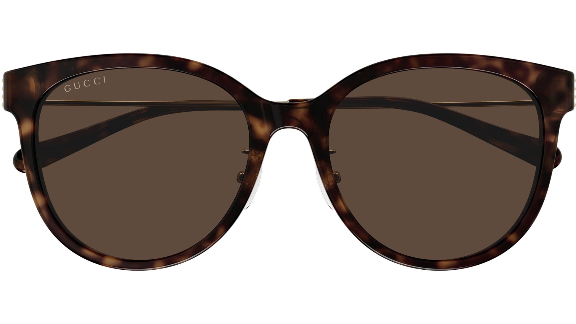 Gucci GG1883SK 002 sunglasses for women, featuring shiny dark havana panthos recycled acetate frame and solid brown bio nylon lenses. Brand line: GG Logo. Style code: GG1883SK. Color code: 002. Made in Japan. Authorized Gucci online reseller. Your glasses will include the original case and accessories and are covered by a 12-month global warranty.
