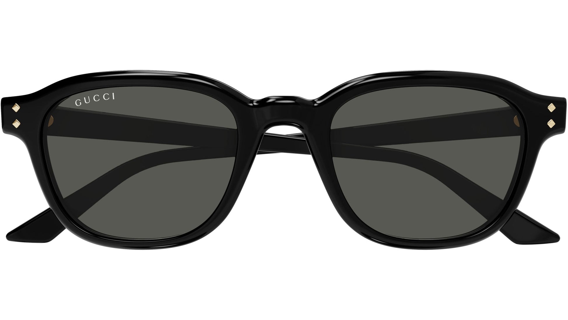 Gucci GG1892S 001 sunglasses for men, featuring shiny black panthos recycled acetate frame and solid grey bio nylon lenses. Brand line: Rivets. Style code: GG1892S. Color code: 001. Made in Italy. Authorized Gucci online reseller. Your glasses will include the original case and accessories and are covered by a 12-month global warranty.