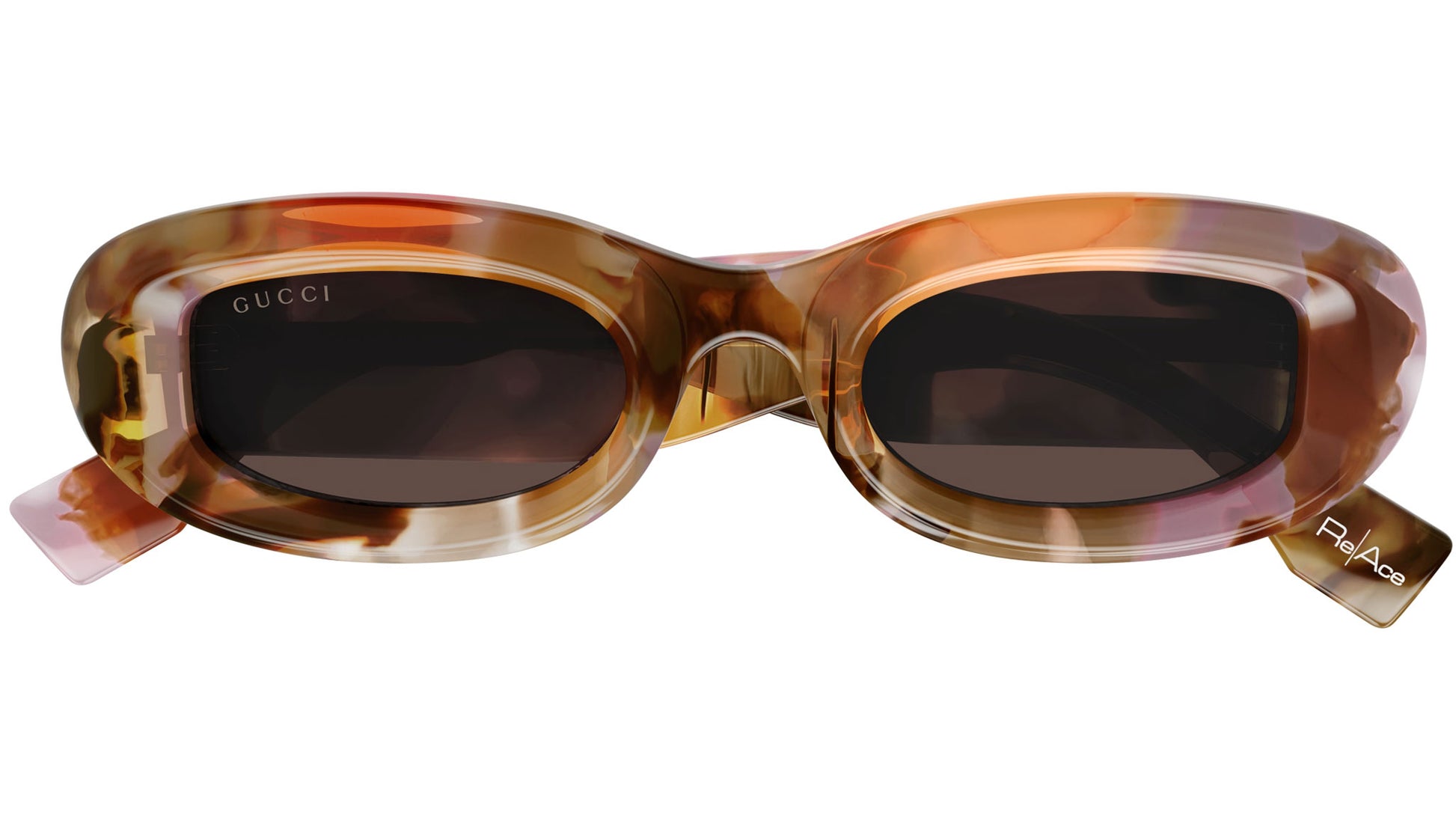 Gucci GG1907S 002 sunglasses for women, featuring macro spotted transparent mandarin panthos recycled acetate frame and solid brown bio nylon lenses. Brand line: Lettering. Style code: GG1907S. Color code: 002. Made in Italy. Authorized Gucci online reseller. Your glasses will include the original case and accessories and are covered by a 12-month global warranty.
