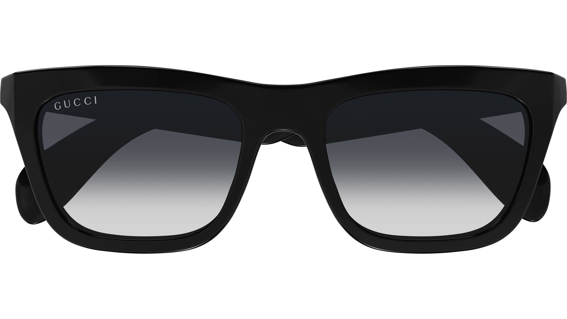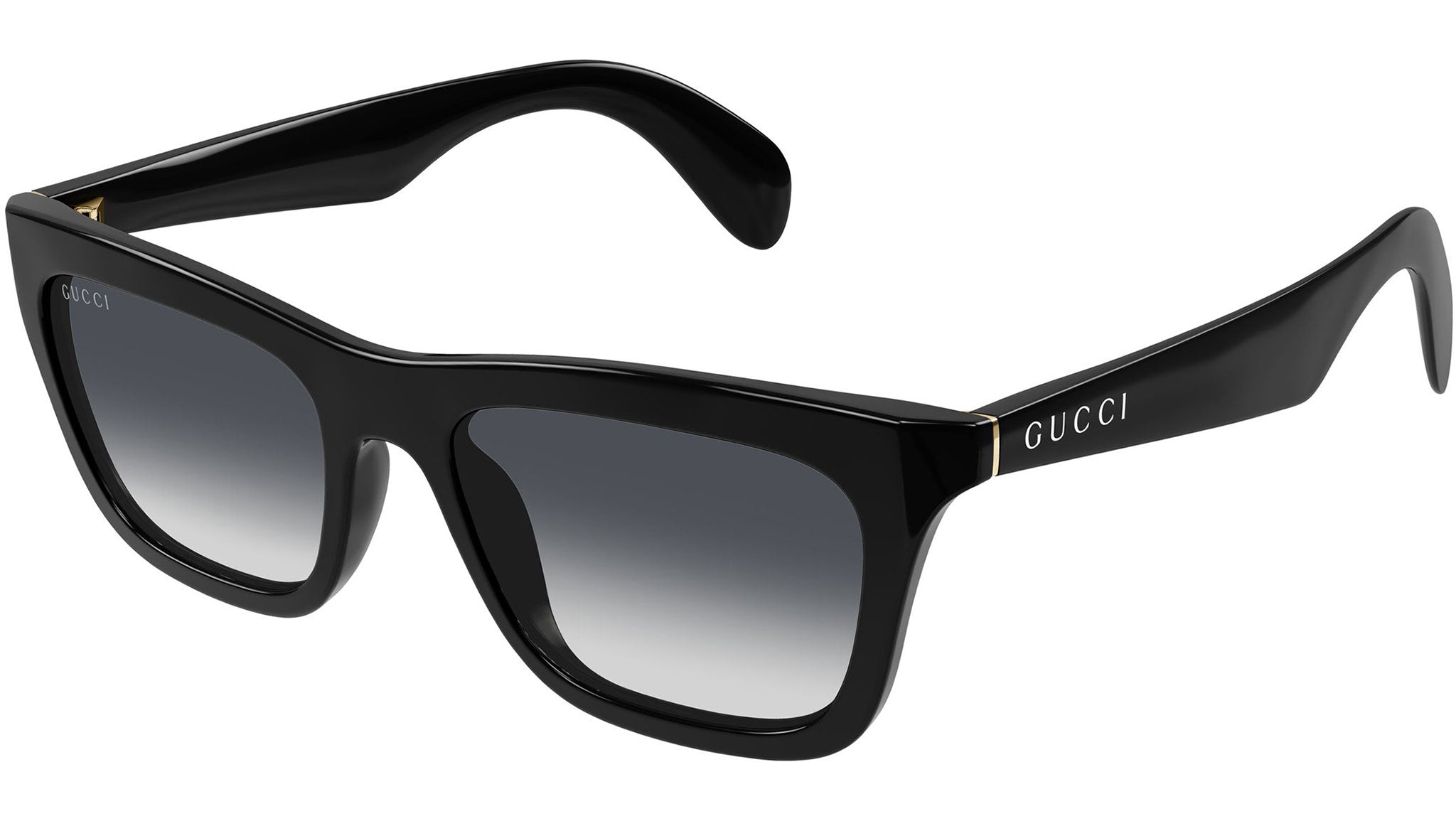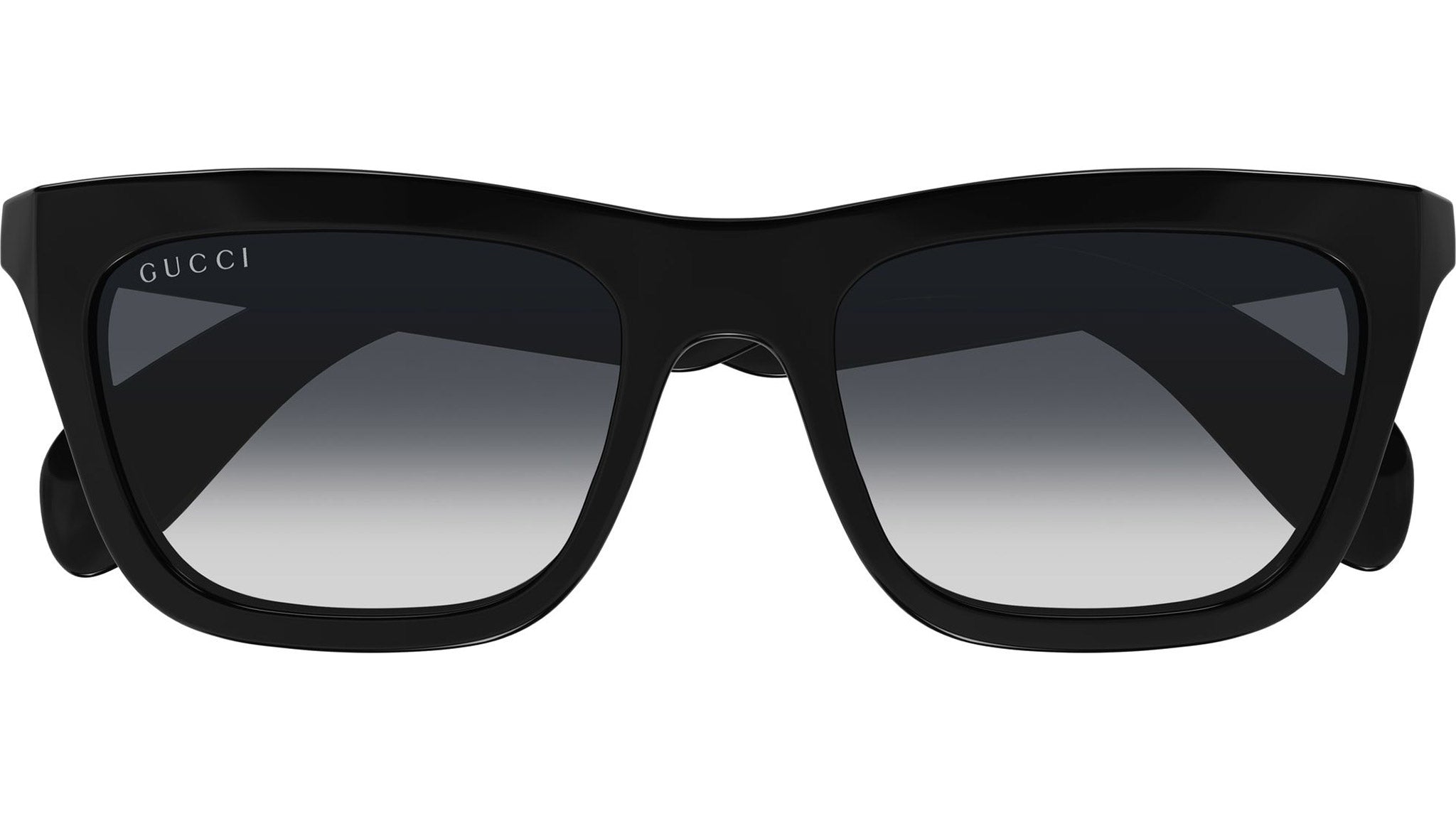 Gucci GG1933S 001 sunglasses for men, featuring shiny black rectangular injection frame and gradient smoke bio nylon lenses. Brand line: Institutional Logo. Style code: GG1933S. Color code: 001. Made in Italy. Authorized Gucci online reseller. Your glasses will include the original case and accessories and are covered by a 12-month global warranty.