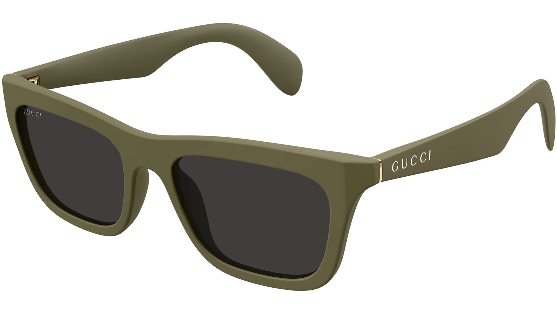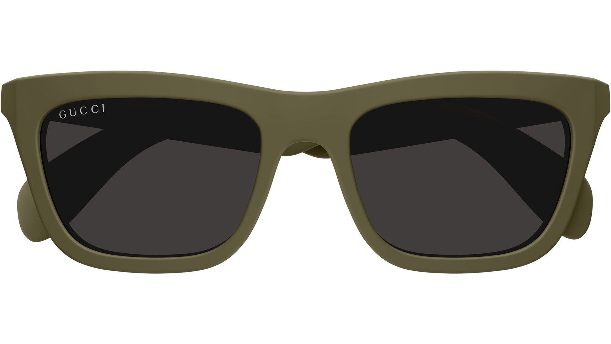 Gucci GG1933S 004 sunglasses for men, featuring matte solid military green rectangular injection frame and solid grey bio nylon lenses. Brand line: Institutional Logo. Style code: GG1933S. Color code: 004. Made in Italy. Authorized Gucci online reseller. Your glasses will include the original case and accessories and are covered by a 12-month global warranty.