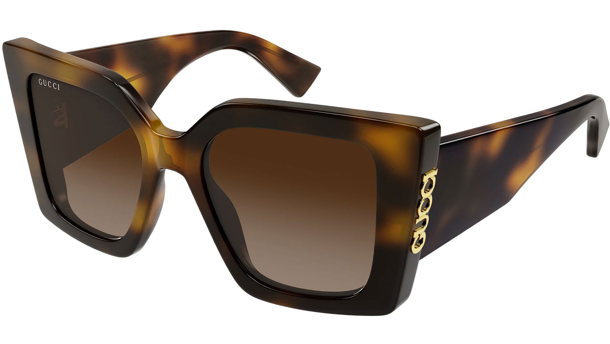 Gucci GG2039S 002 sunglasses for women, featuring shiny medium brown havana butterfly recycled acetate frame and gradient brown bio nylon lenses. Brand line: Name Of Brand. Style code: GG2039S. Color code: 002. Made in Italy. Authorized Gucci online reseller. Your glasses will include the original case and accessories and are covered by a 12-month global warranty.