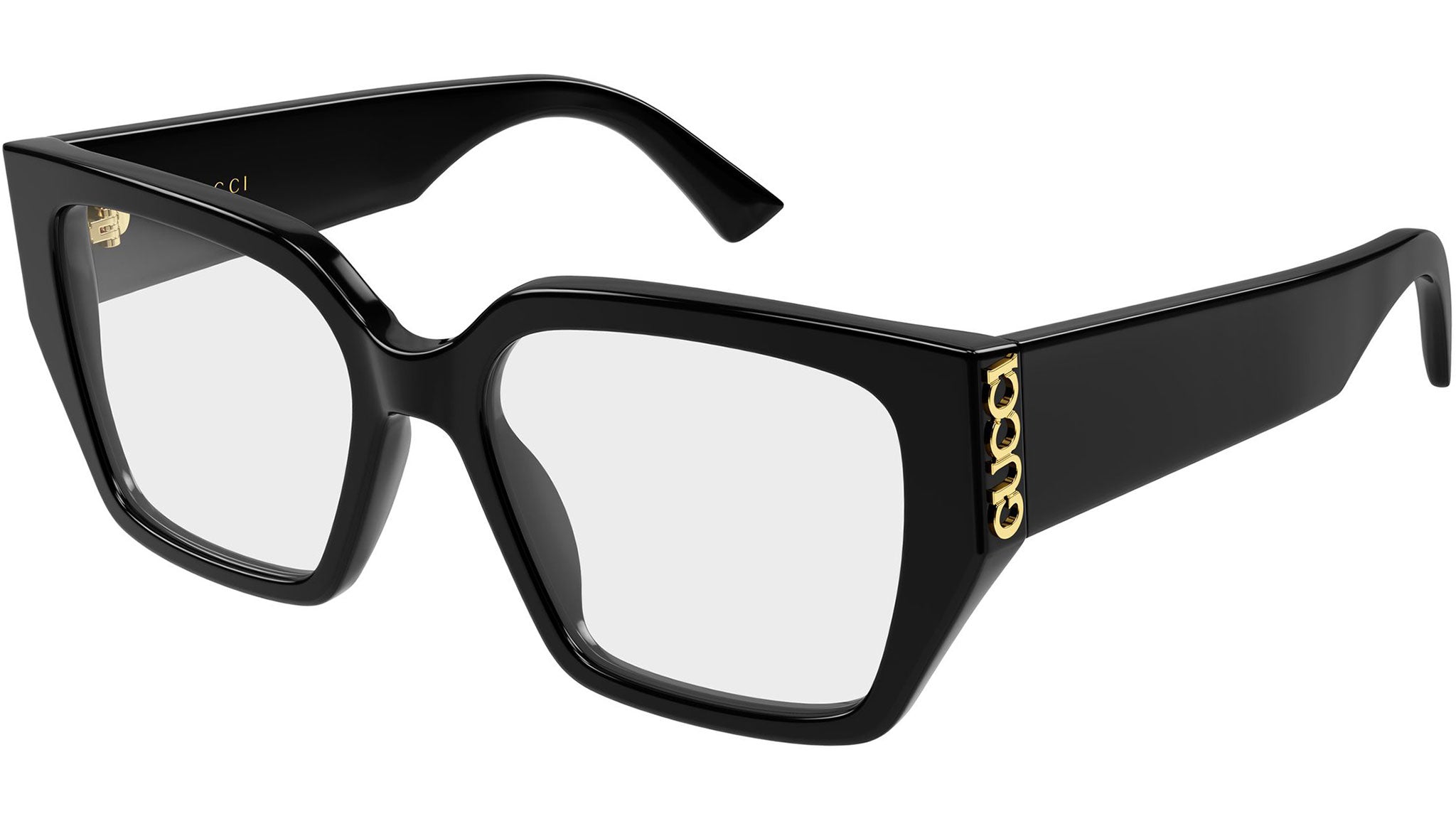 Gucci GG2042O 001 glasses for women, featuring shiny black butterfly recycled acetate frame and demo lenses. Brand line: Name Of Brand. Style code: GG2042O. Color code: 001. Made in Italy. Authorized Gucci online reseller. Your glasses will include the original case and accessories and are covered by a 12-month global warranty.