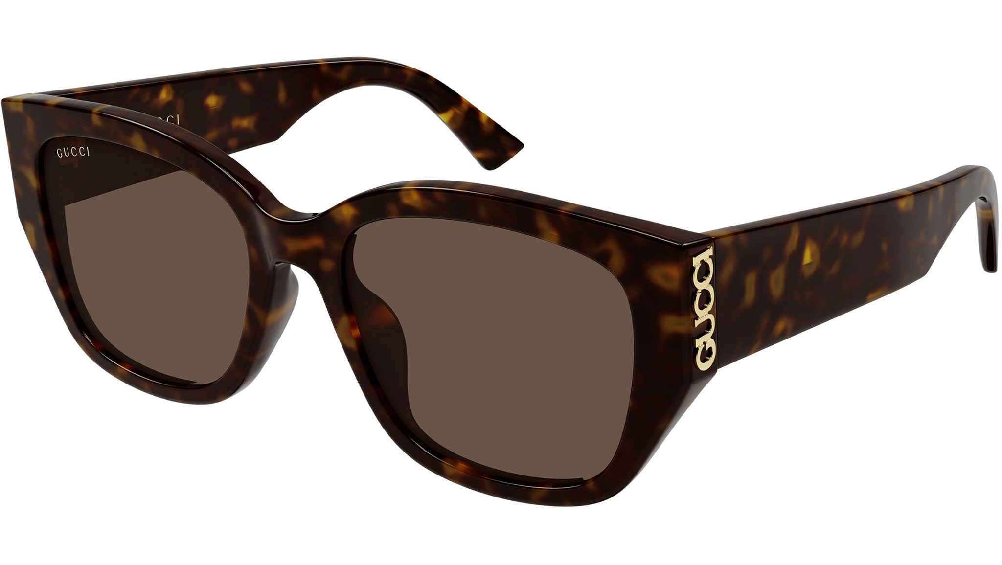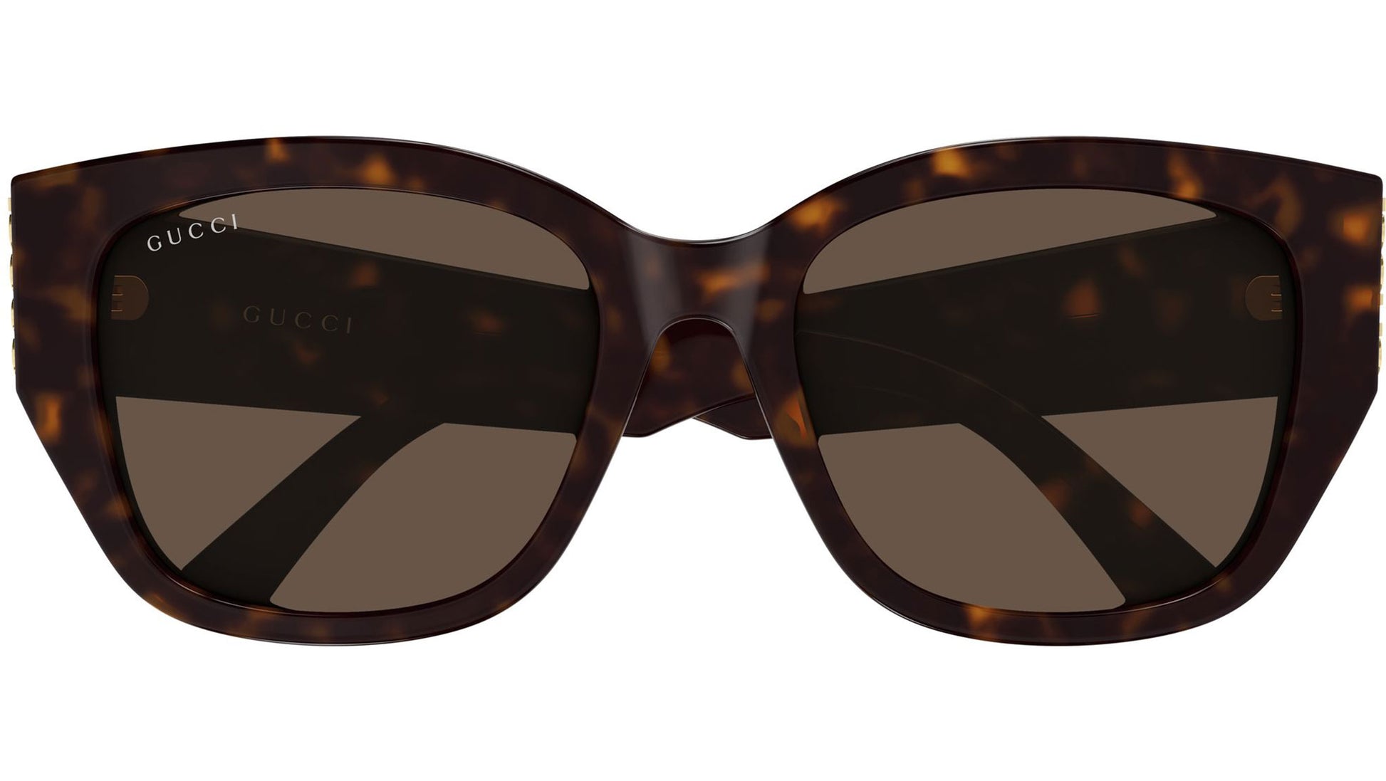 Gucci GG2043SA 002 sunglasses for women, featuring shiny dark havana panthos recycled acetate frame and solid brown bio nylon lenses. Brand line: Name Of Brand. Style code: GG2043SA. Color code: 002. Made in Italy. Authorized Gucci online reseller. Your glasses will include the original case and accessories and are covered by a 12-month global warranty.