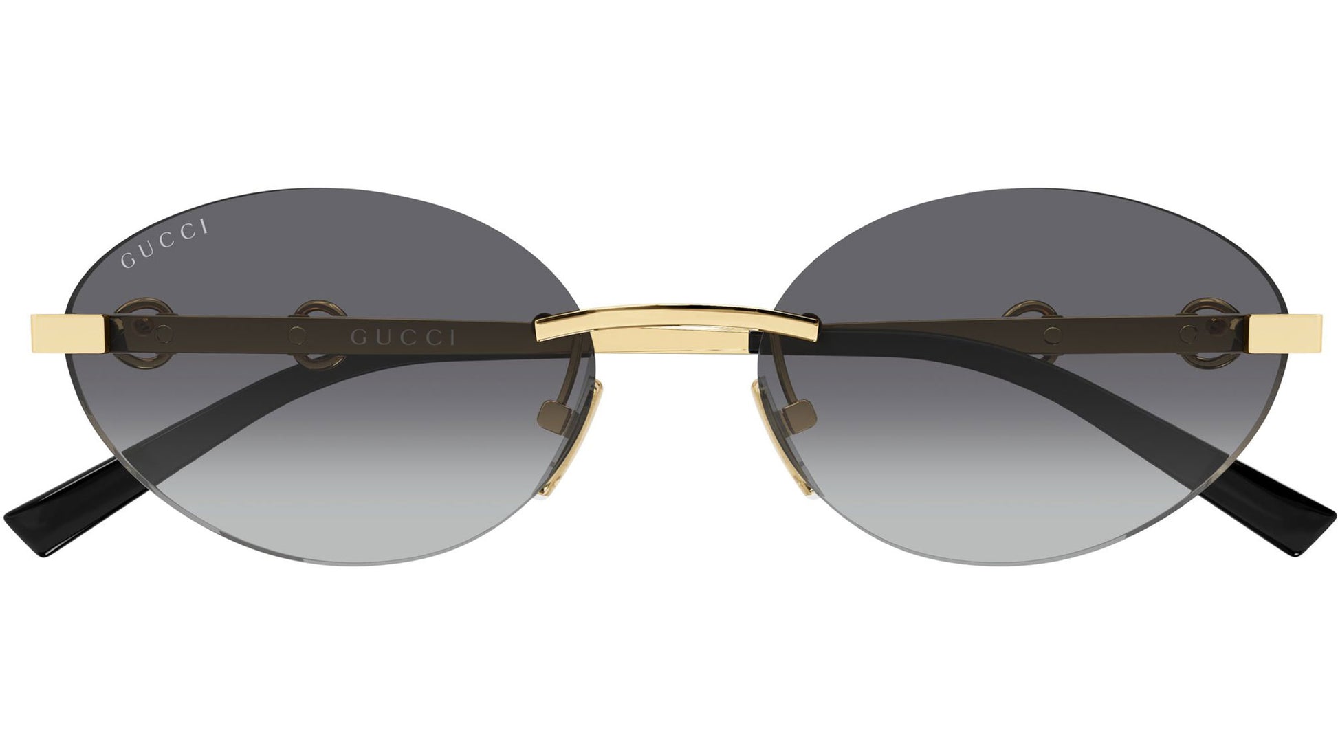 Gucci GG2051S 002 sunglasses for women, featuring shiny endura gold panthos metal frame and gradient grey bio nylon lenses. Brand line: Sign. Style code: GG2051S. Color code: 002. Made in Japan. Authorized Gucci online reseller. Your glasses will include the original case and accessories and are covered by a 12-month global warranty.