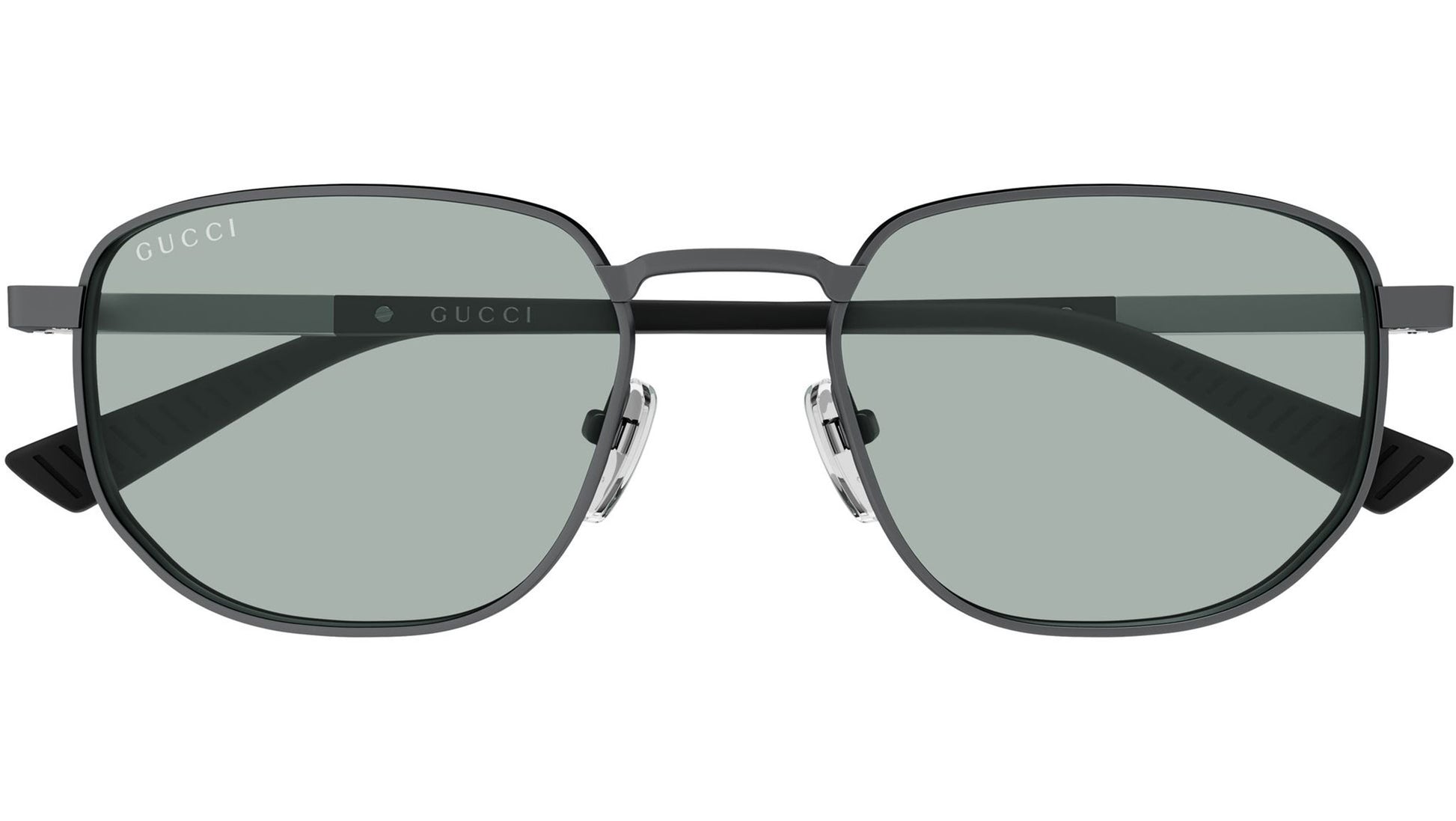 Gucci GG2093S 002 sunglasses for men, featuring matte dark ruthenium rectangular metal frame and solid ice blue bio nylon lenses. Brand line: Sign. Style code: GG2093S. Color code: 002. Made in Italy. Authorized Gucci online reseller. Your glasses will include the original case and accessories and are covered by a 12-month global warranty.