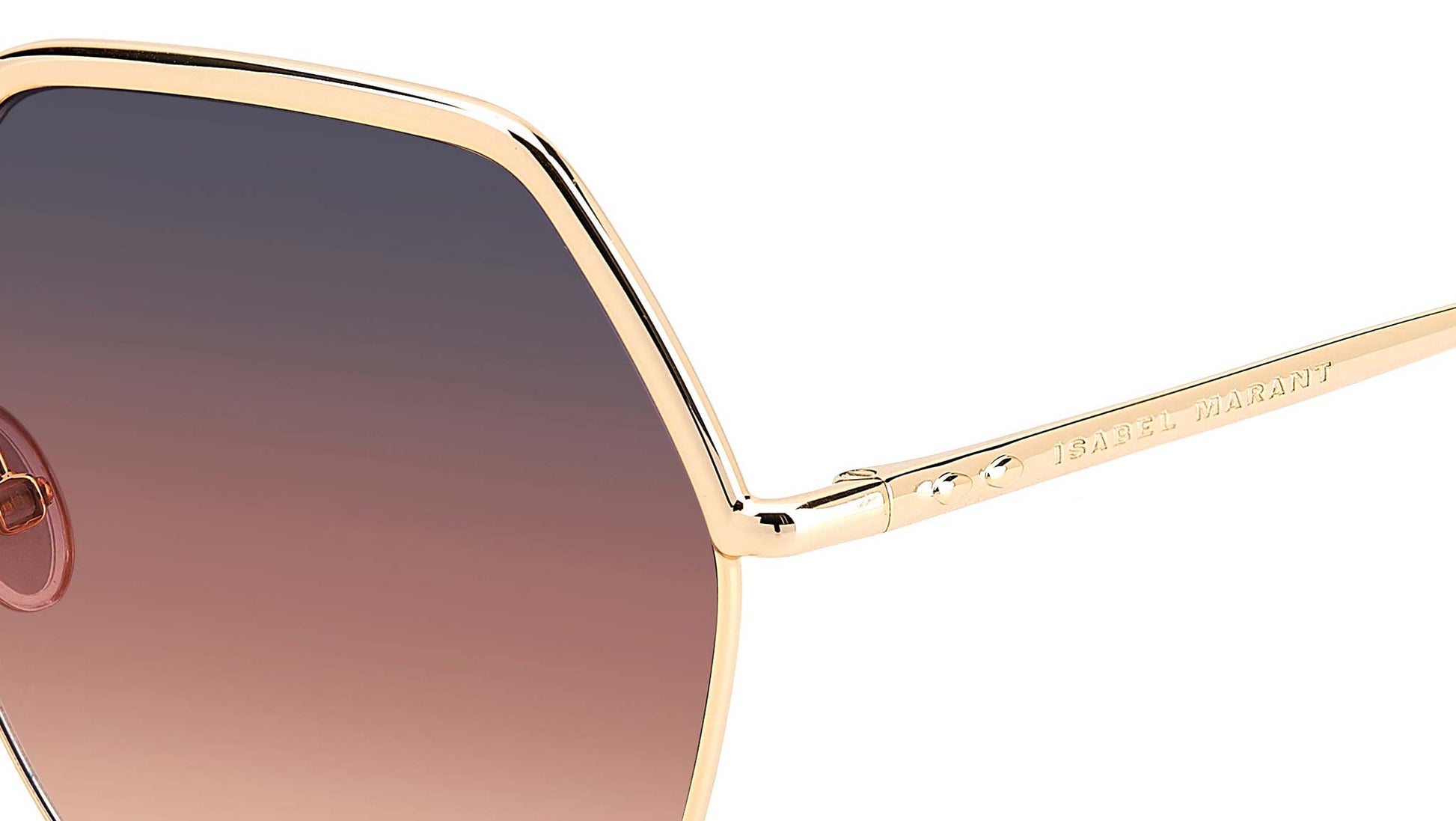 Isabel Marant IM 0119/S 000 FF rose gold metal geometric Sunglasses. Everyday elegance: the Wild Metal eyewear collection by Isabel Marant draws on the brand's effortless attitude, showcasing a selection of lightweight metal frames defined by clean architectural lines. Distinguished by a statement hexagonal shape, these sunglasses flaunt raised details on the temple and shaped end tips in tribute to Isabel Marant's hallmark motif. Shaded lenses take on sunset hues, whilst lasered logo lettering adds a signature touch.