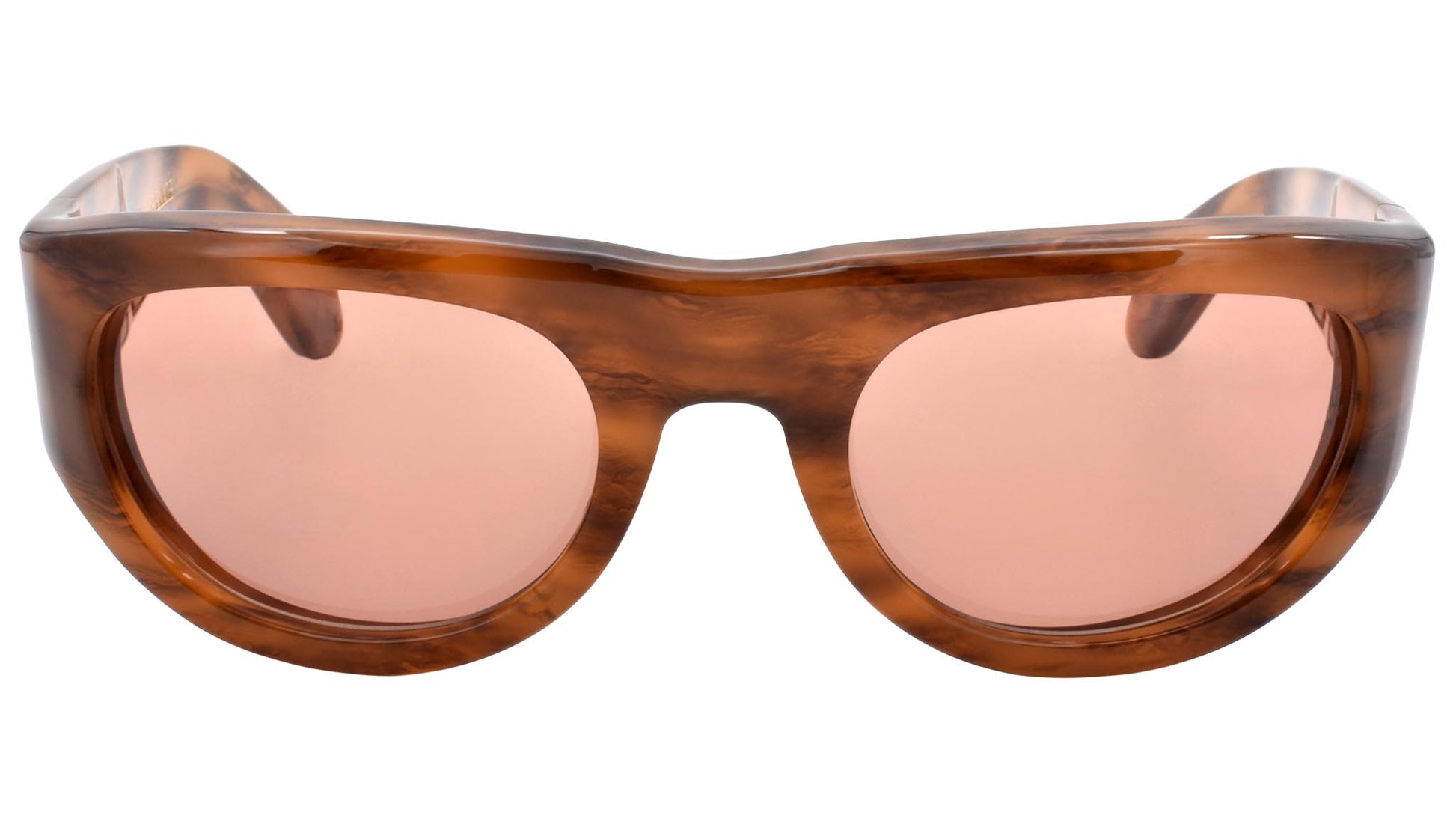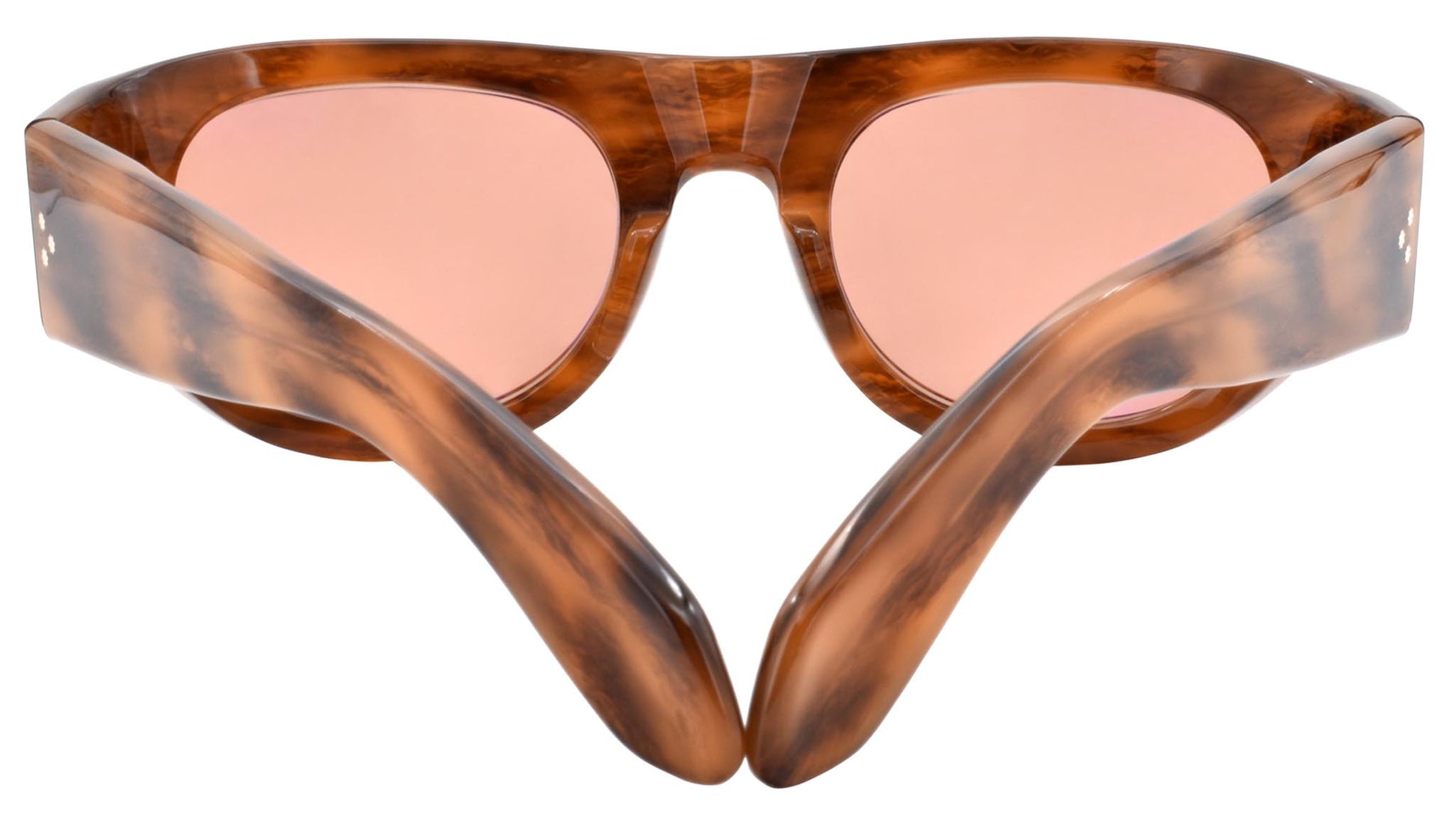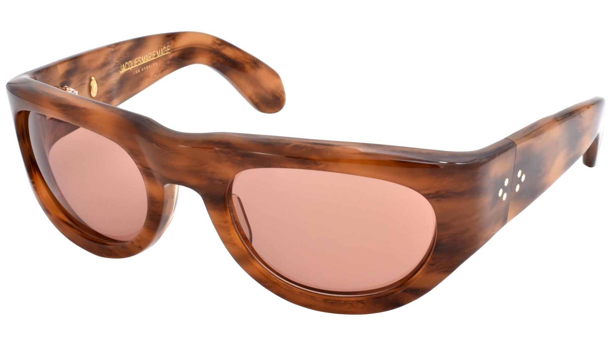 Material: 10mm block, polished oak acetate frame, custom double laminated acetate temples ft. precious metal hardware in light gold. Lens color: yellow.