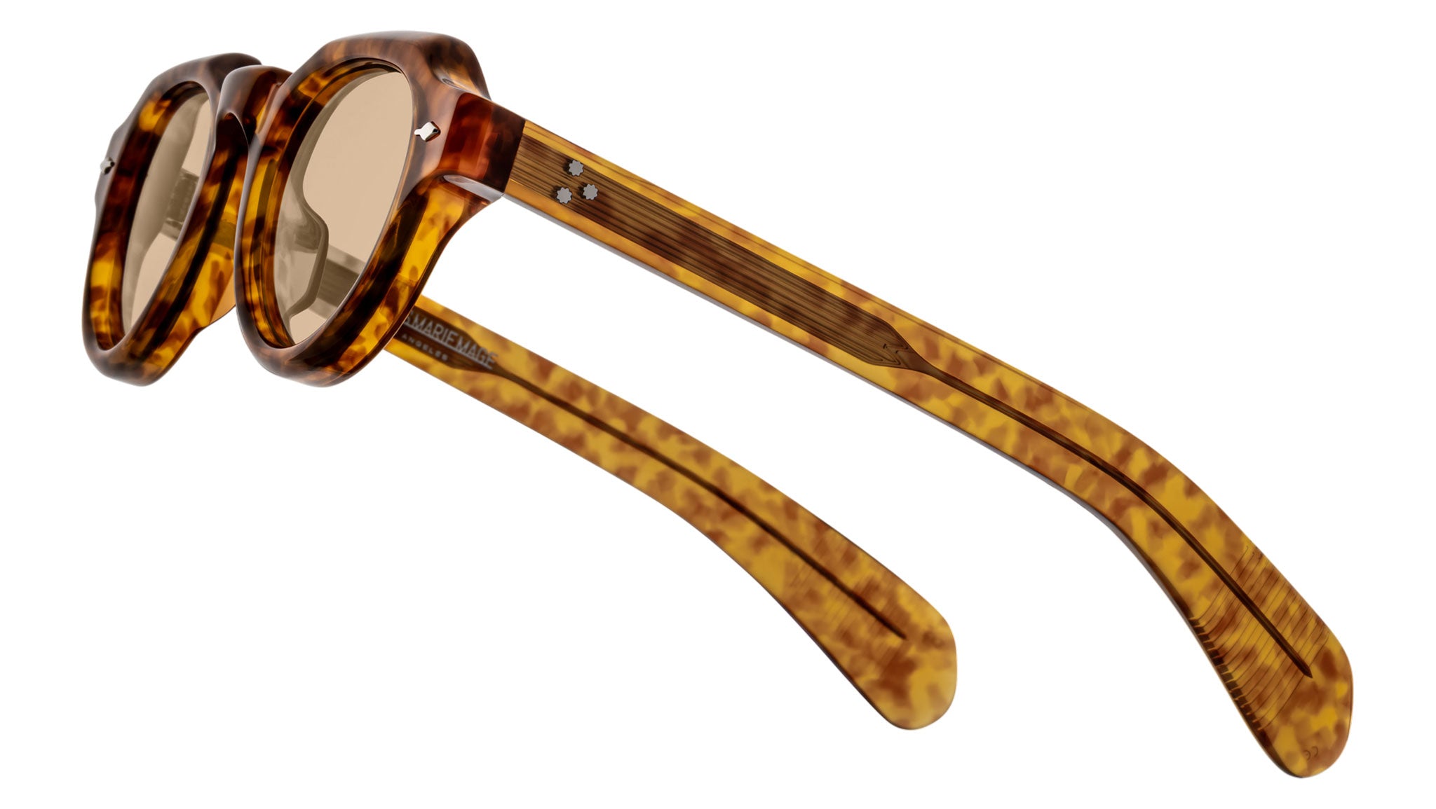 The Jacques Marie Mage Kellerman glasses are sculptural, limited-edition frames with a refined modified panto shape. Featuring signature precious metal arrowhead front pins, spur-shaped rivets, and custom 7-barrel hinges, these spectacles are a testament to precision and poise. Inspired by French cavalry general François Étienne de Kellerman, they embody bold design and meticulous craftsmanship, offering a timeless statement rich in character and resilience.