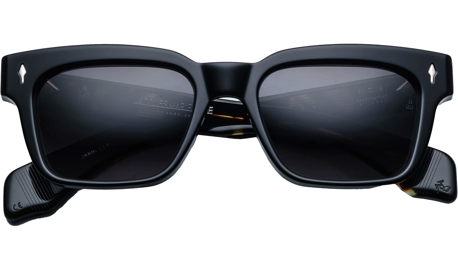 The Jacques Marie Mage Molino sunglasses are iconic rectangular frames inspired by the bold aesthetics of the 1960s, defined by their sculptural beveling and signature precious metal embellishments. A refined expression of rebellious sophistication, this design combines striking volume with balanced proportions, resulting in a handcrafted heirloom that embodies sensuality and poetic craftsmanship.