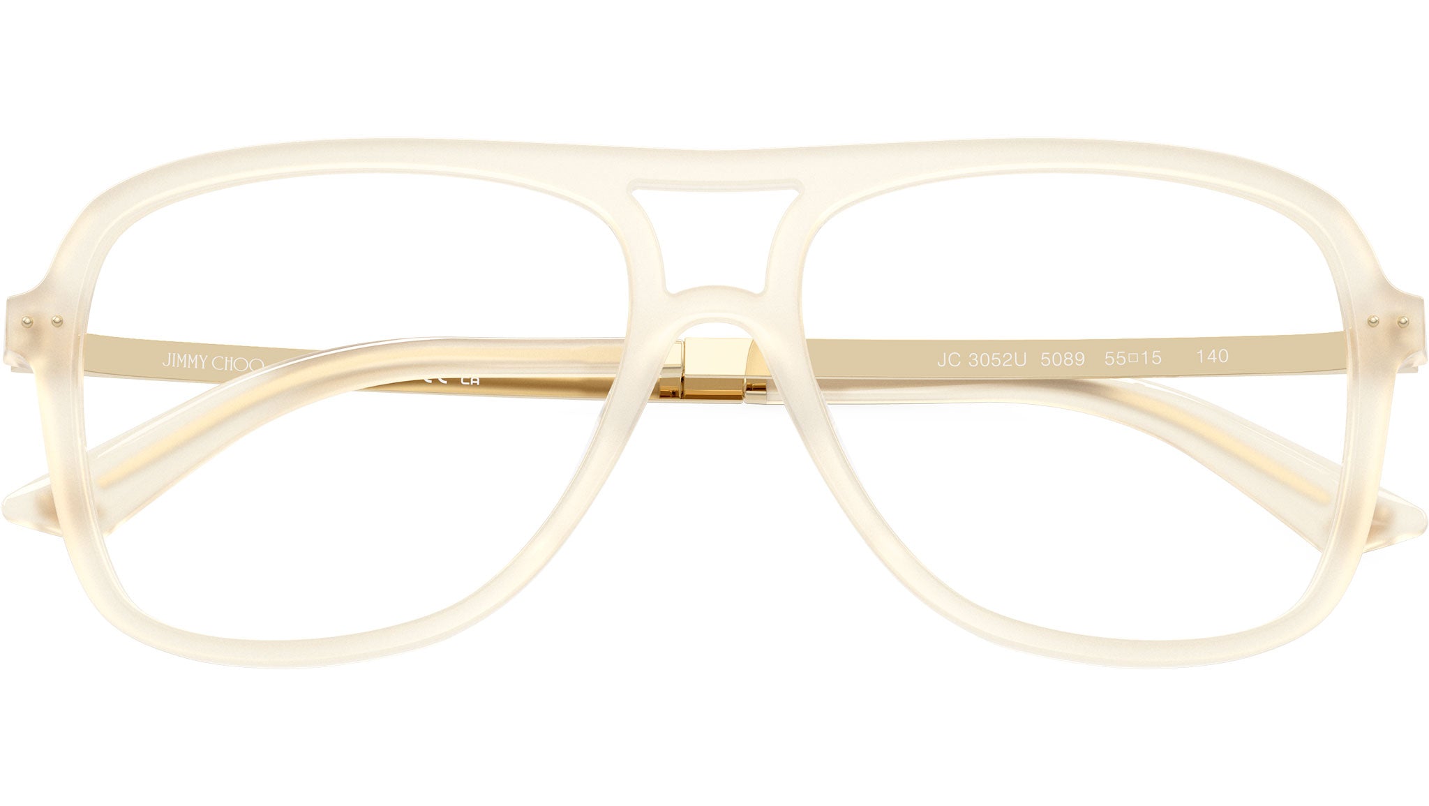 Jimmy Choo JC3052U 5089 glasses for women, featuring opaline yellow pilot acetate frame and demo lenses. Universal fit. Brand line: JC Monogram. Style code: 0JC3052U. Color code: 5089. Authorized Jimmy Choo online reseller. Your glasses will include the original case and accessories and are covered by a 12-month global warranty.