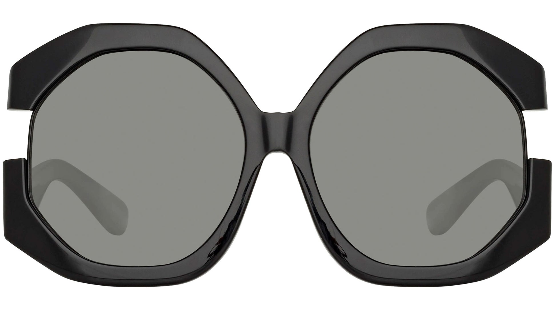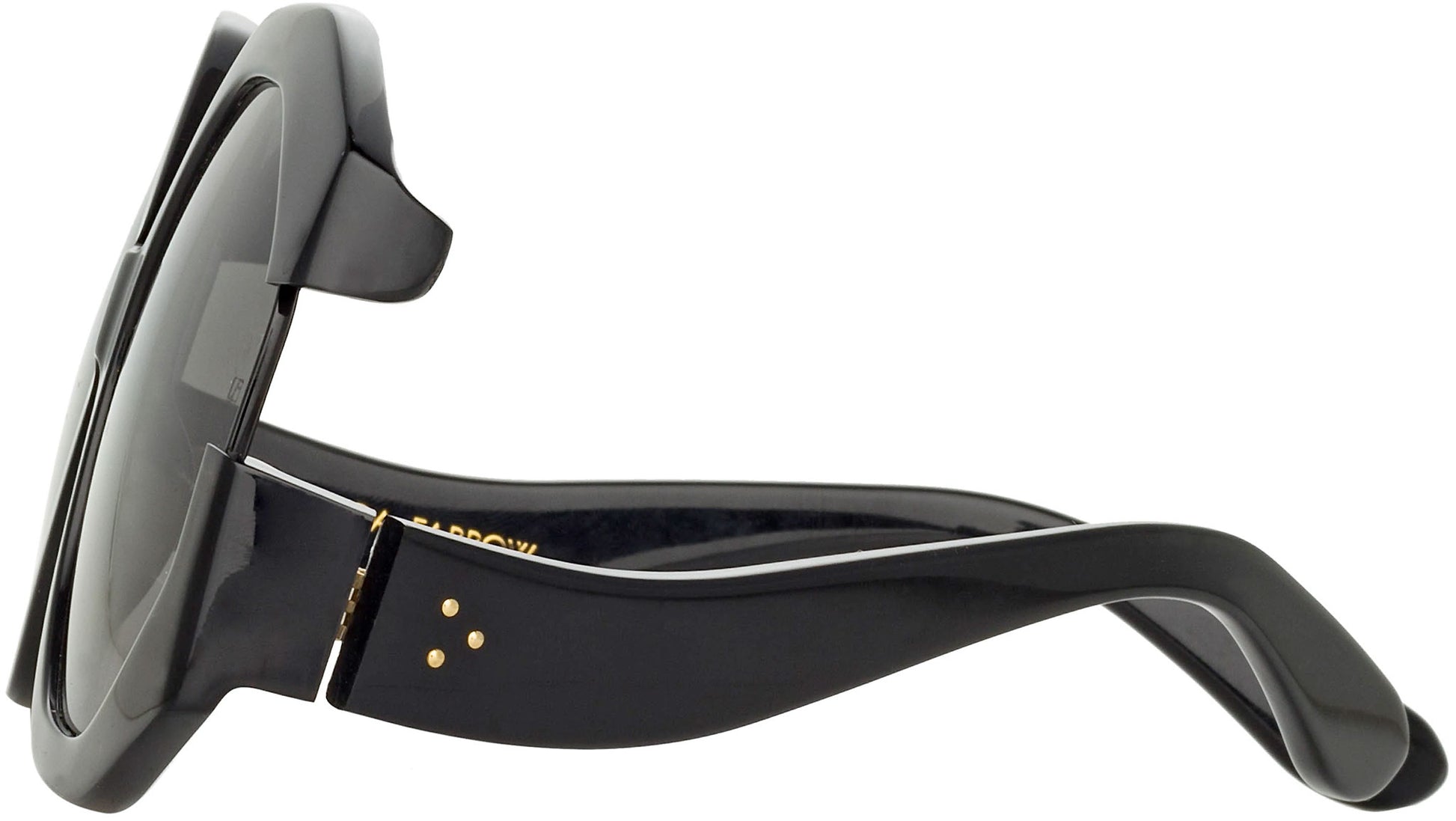 These exaggerated sunglasses from the Linda Farrow collection make a bold statement. Crafted from black Italian acetate, the side of the frame is dramatically cut away to reveal a fine metal rim. Paired with playfully sculpted temples the style is finished with solid grey lenses for optimum clarity and UV protection.
