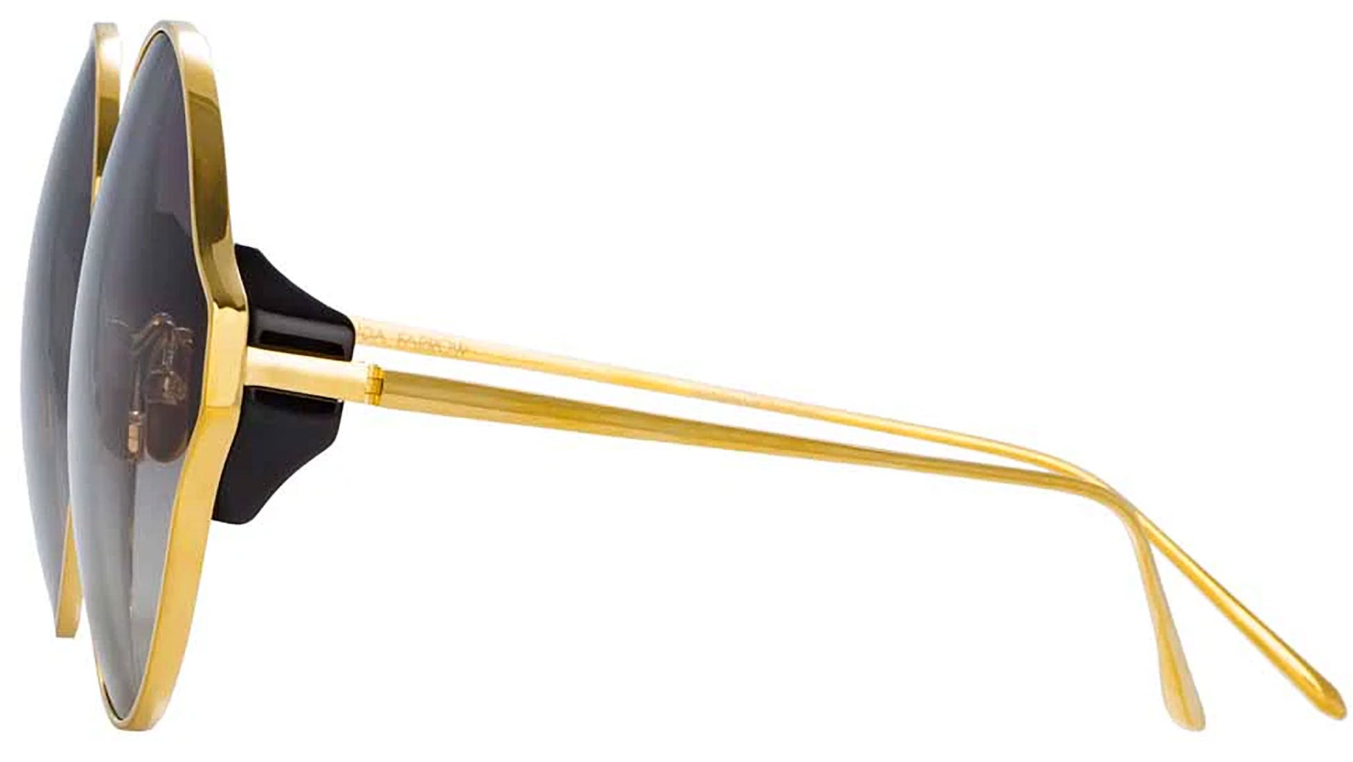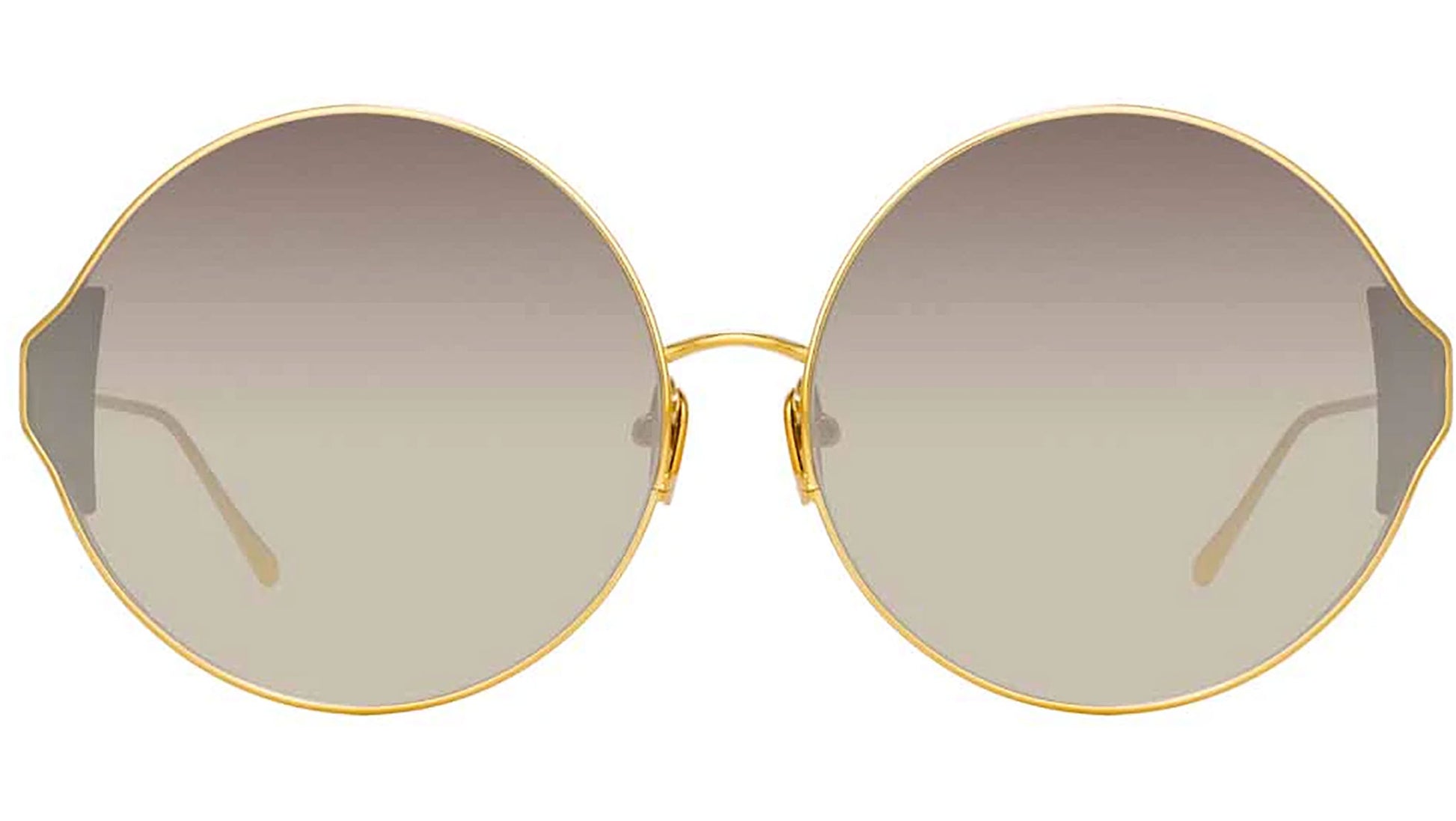 Channeling the magic of the circus, these round CAROUSEL Linda Farrow sunglasses bring your look to life. Crafted from 18-22 carat yellow gold-plated Japanese titanium, theyre elevated with a contrasting black acetate chunk to the corners. Grey gradient ZEISS Pure lenses offer a new innovation in anti-smudge and scratch resistance technology for a flawless lens with minimal internal reflection thats exclusive to Linda Farrow.