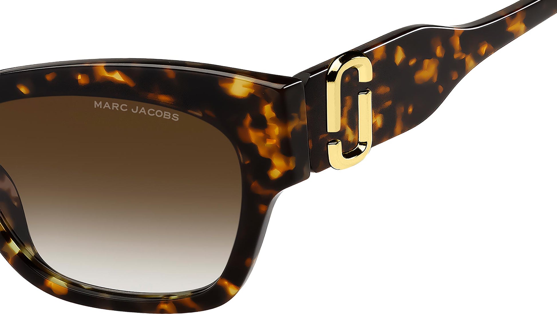 Marc Jacobs MARC 762/S 086 HA sunglasses for women, featuring havana rectangular acetate frame and brown shaded lenses. Bold and instantly recognisable, Marc Jacobs' eyewear collection inspires daily indulgences and endless self-expression. These women's sunglasses make a fashion-forward statement with their bold, thick acetate profile and JJ metal trims on the temples for an eye-catching look that defies conventions. Precious finishing touches, like the logo-engraved metal plaque and the laser-etched signature on the tinted lenses, celebrate the designer's distinctive elegance. Brand line: Contemporary Woman. Style code: 207612. Color code: 086 HA. Authorized Marc Jacobs online reseller. Your glasses will include the original case and accessories and are covered by a 12-month global warranty.