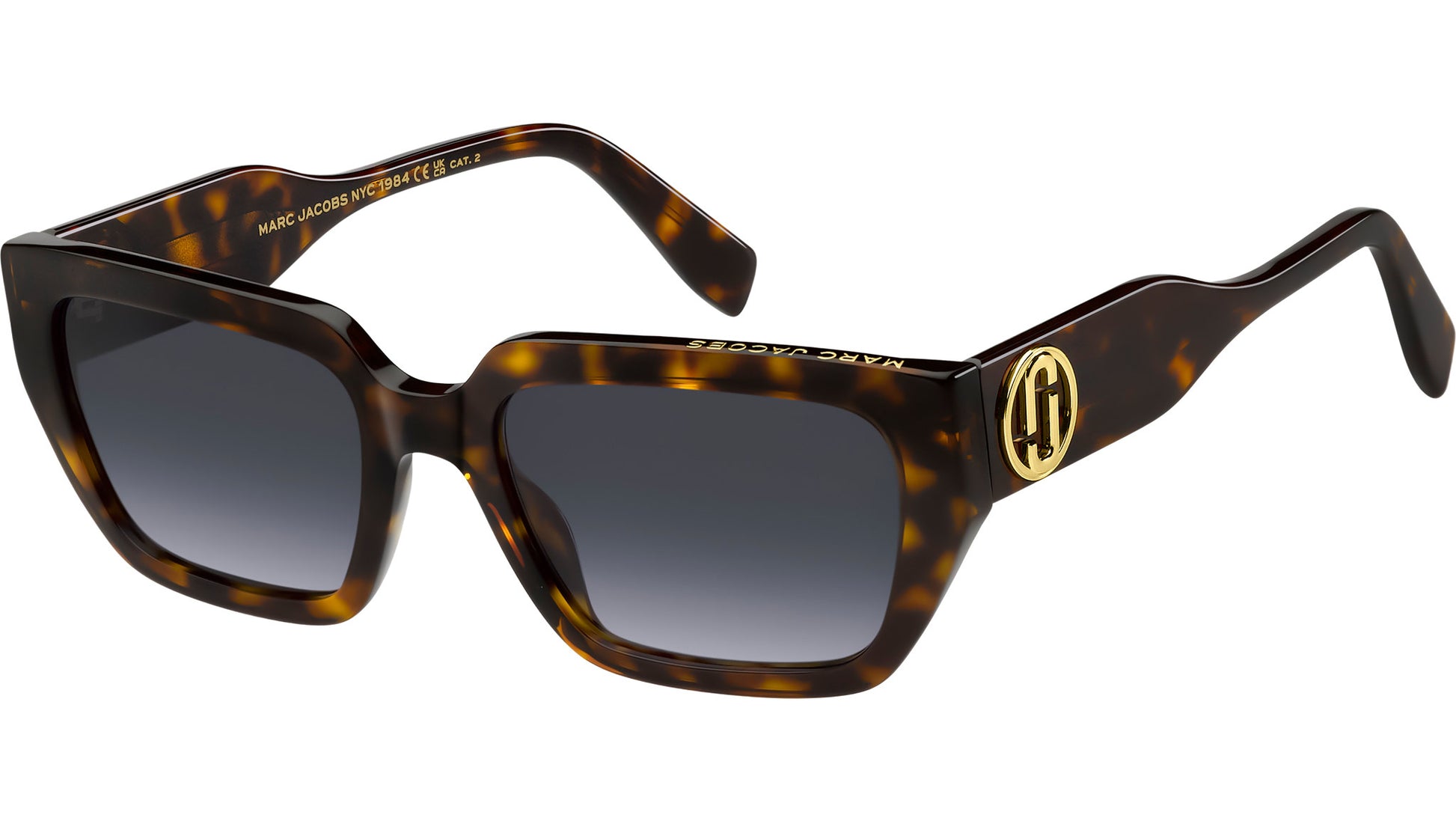 Marc Jacobs MARC 809/S 086 GB sunglasses for women, featuring havana rectangular acetate frame and grey azure lenses. A sophisticated new take on Marc Jacobs' iconic themes, these women's sunglasses combine soft lines and ultra-sharp angles to stunning effect. Entirely crafted from acetate, notice the signature finishing touches – the round metal J Marc trims and the inlet logo along the brow bar – that amp up their fashion credentials. The colour palette beautifully harmonises timeless and contemporary tones. Brand line: Contemporary Woman. Style code: 208028. Color code: 086 GB. Authorized Marc Jacobs online reseller. Your glasses will include the original case and accessories and are covered by a 12-month global warranty.