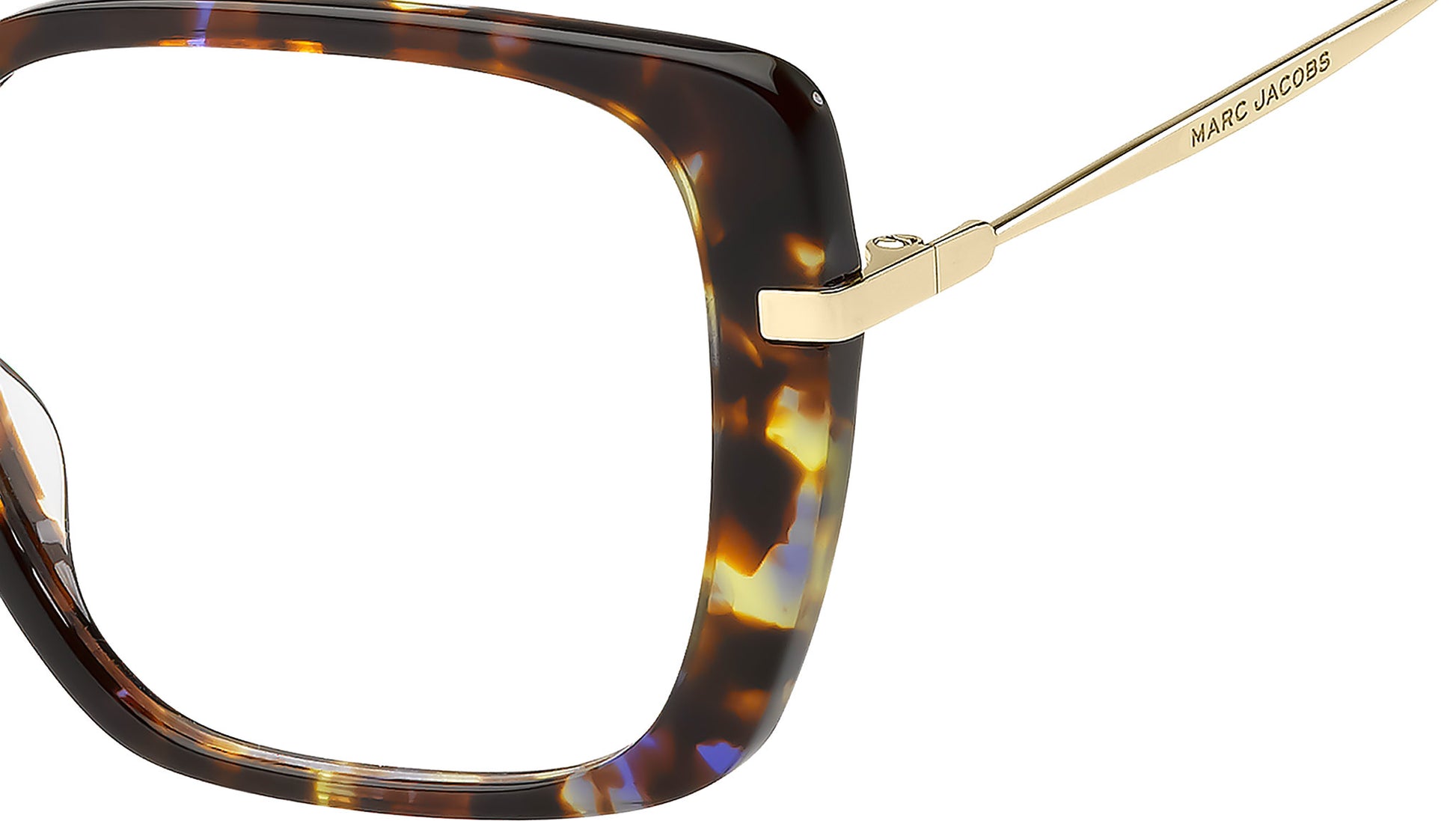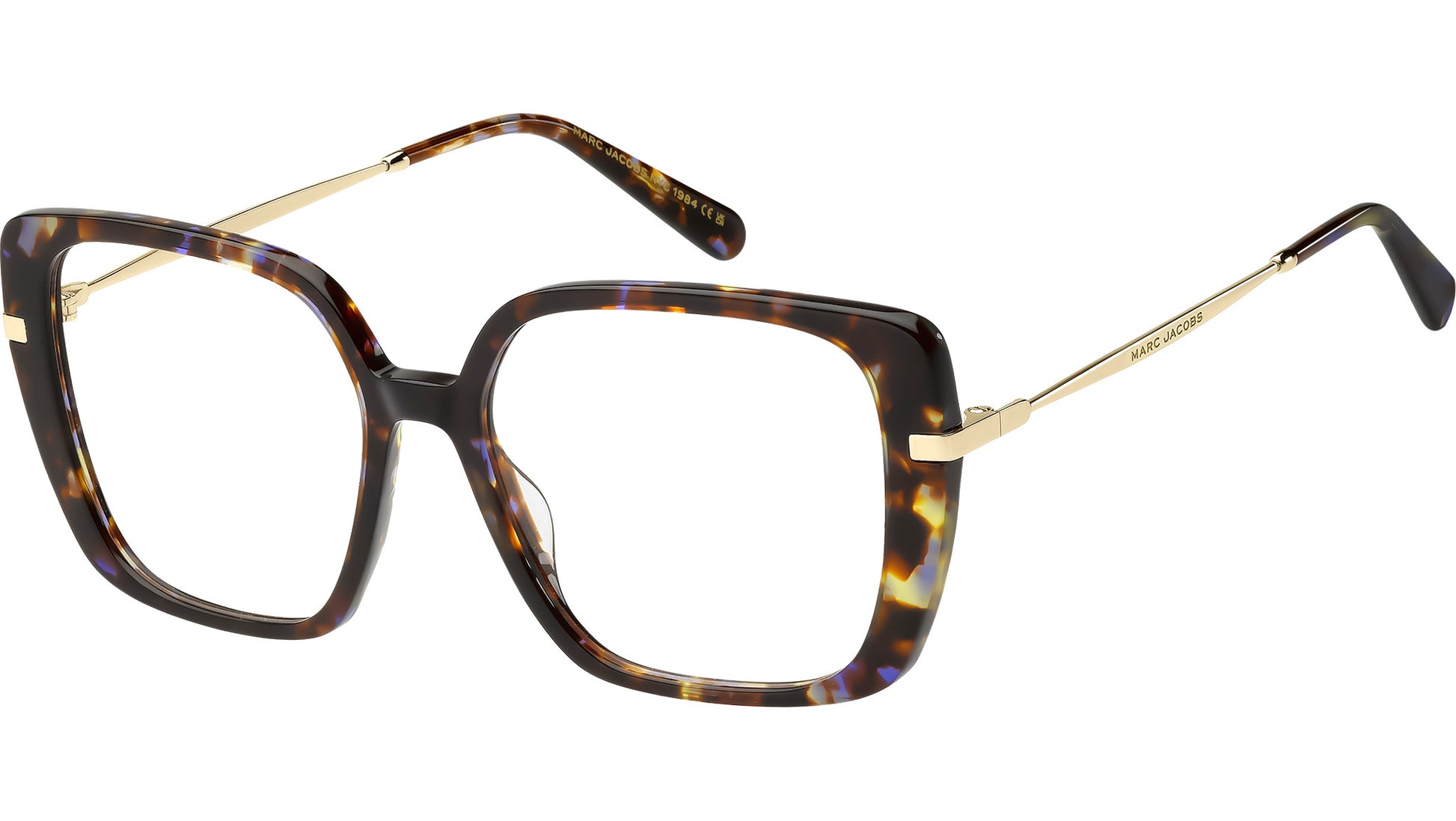Marc Jacobs MARC 834 DEX glasses for women, featuring brown violet havana squared acetate frame and demo lens lenses. Effortless yet impactful, the new collection of women's optical glasses continues to evolve Marc Jacobs' vision, showcasing a studied fusion of colours and materials, from full metal to combination styles. Explore a wide range of shapes and sizes, all enhanced with iconic details, like luminous metal end pieces, a laser-etched logo on the temples and sleek acetate end tips. Available in timeless finishes and distinctive seasonal colourways, each element celebrates individuality and self-expression. Brand line: Contemporary Woman. Style code: 109407. Color code: DEX. Authorized Marc Jacobs online reseller. Your glasses will include the original case and accessories and are covered by a 12-month global warranty.