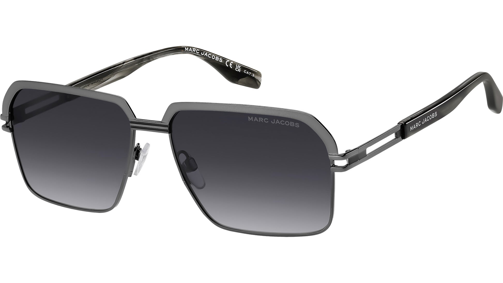 Marc Jacobs MARC 839/S POH 9O sunglasses for men, featuring ruthenium grey horn rectangular metal frame and dark grey shaded lenses. An eyewear collection for the daring man – Marc Jacobs' sunglasses elevate everyday style with bold shapes, rich textures and unexpected touches. From sleek metal and sturdy titanium to classic acetate and combination styles, it's the label's unmissable details that lend them a fresh perspective: the double metal trim and the inlet logo on the temples, plus the laser-etched signature on the left lens. Enhanced by seasonal colour combinations, they're the go-to for fashion's most discerning dressers. Brand line: Man. Style code: 207933. Color code: POH 9O. Authorized Marc Jacobs online reseller. Your glasses will include the original case and accessories and are covered by a 12-month global warranty.