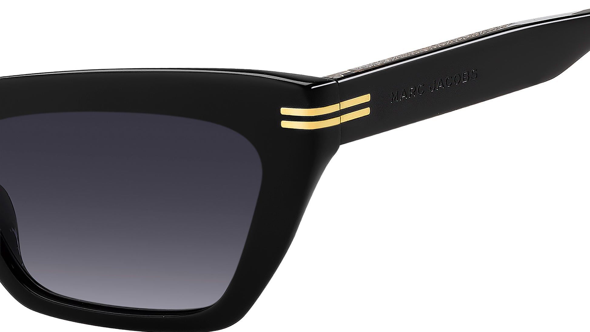Marc Jacobs MJ 1112/S 807 9O sunglasses for women, featuring black rectangular acetate frame and dark grey shaded lenses. Marc Jacobs' reputation for revolutionary styles translates in the designer's eyewear collection – including these women's sunglasses. The bold acetate constriction accentuates the glamorous shape, while the iconic details offer plenty of couture confidence. From the elegant JJ motif to the custom wirecore and the MJ plaque at the tips, each element balances simplicity and distinction. Look closely to spot the laser-engraved logo on the upper edge of the frame, sealed with a layer of lacquer for a luxurious twist. Brand line: Premium Woman. Style code: 207588. Color code: 807 9O. Authorized Marc Jacobs online reseller. Your glasses will include the original case and accessories and are covered by a 12-month global warranty.