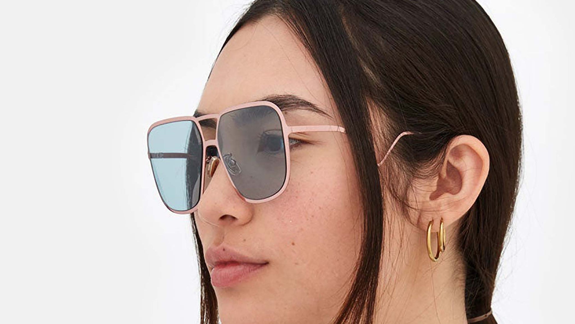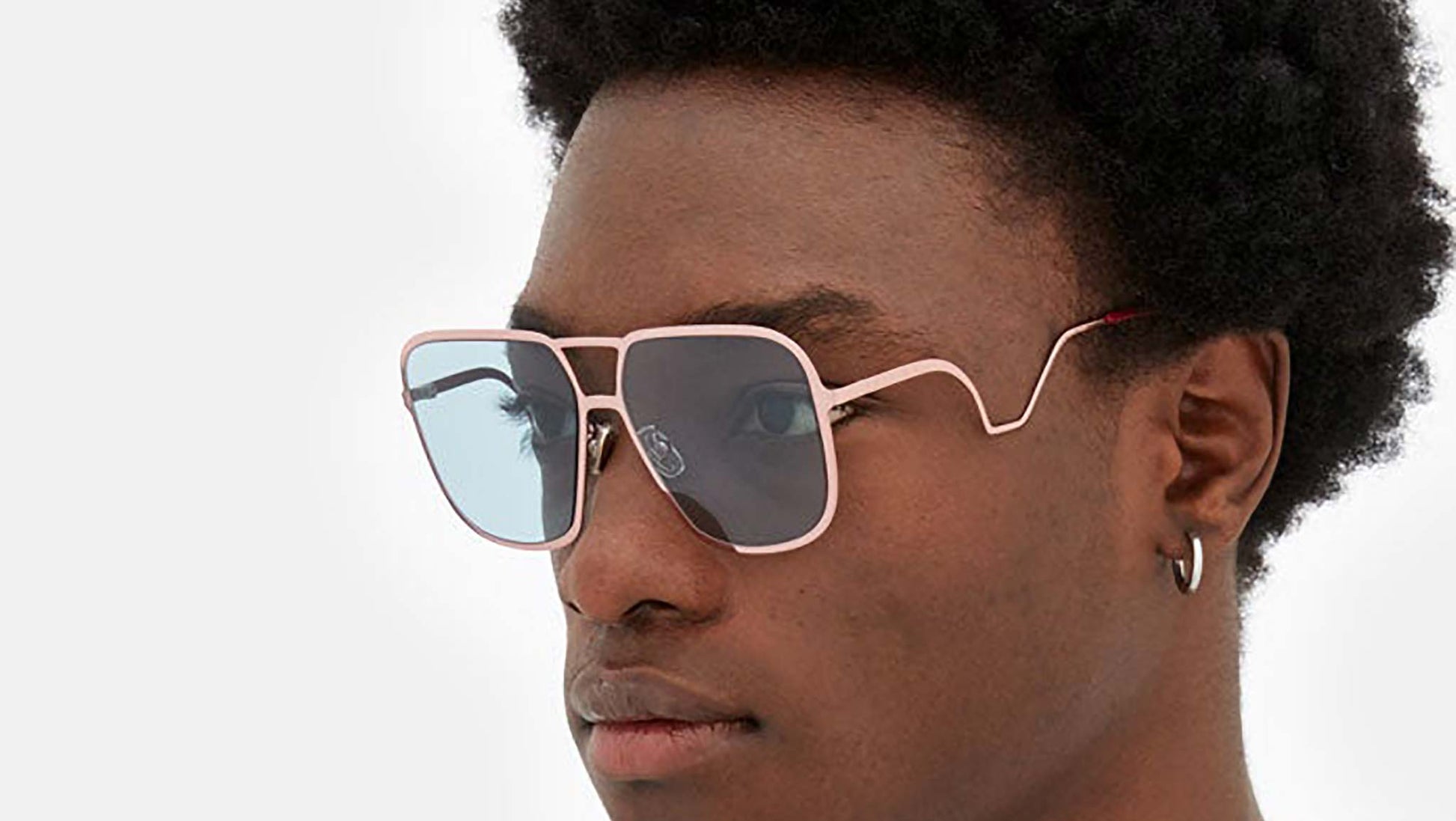 Designed exclusively for Marni, Ha Long Bay is a sleek silhouette carved out of a single sheet of shiny metal. The model features squared lenses encased within flat metal rims with a double nose-bridge. The key feature of the model are its curved temples with acetate tips. The model comes with a rose gold metallic finish and tinted turquoise lenses. Sizes: R Lens Width: 58 mm. Frame Front: Frame Side: 145 mm. Product Code Size R: W1Z