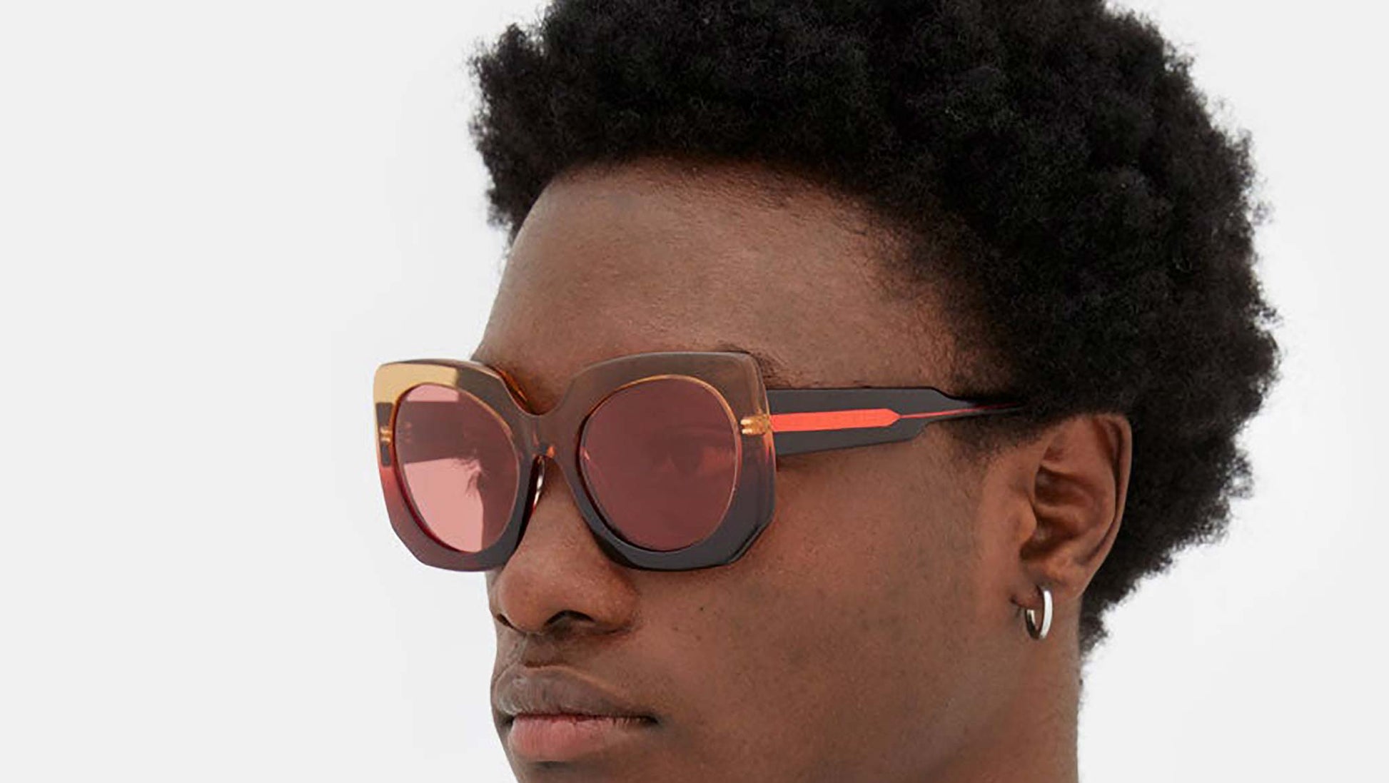 Designed exclusively for Marni, Jellyfish Lake are bold, iconic sunglasses characterised by off-set oversized lenses with a tweaked 1960s aesthetic. The thick acetate construction emphasises the material, tactile qualities of exceptional Italian acetate, with its sturdy temples and chiselled rims. The playful contrast between the rectangular rims and oblique, jellyfish shaped lenses gives this model its eclectic and unique identity. Jellyfish Lake comes in a playful pink fading acetate with matching tinted lenses. Sizes: R Lens Width: 56 mm. Frame Front: Frame Side: 145 mm. Product Code Size R: TLL