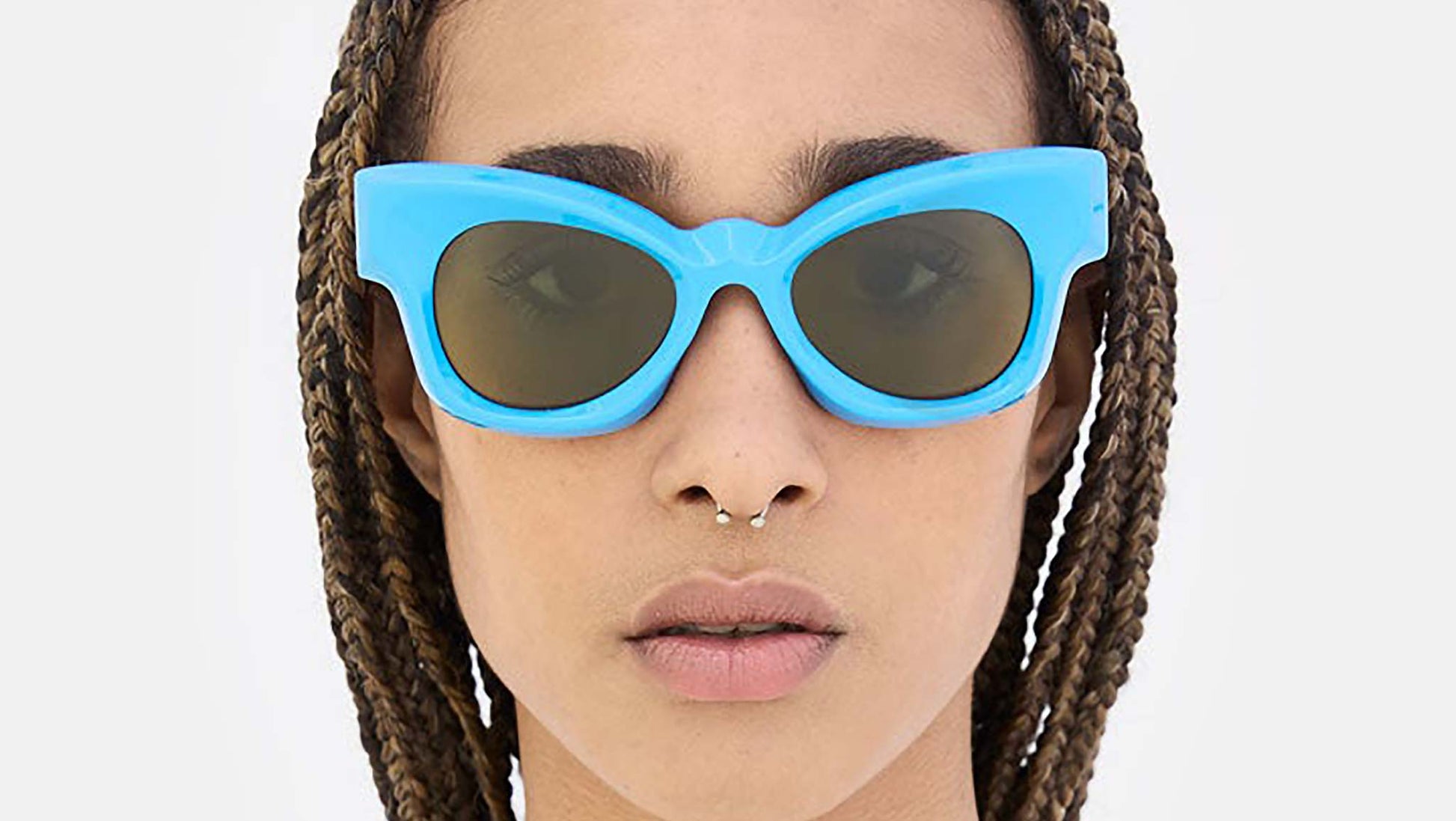 Designed exclusively for Marni, Magneticus is a bold contemporary silhouette featuring an intellectual character with a naughty twist. Its broad frontal piece is characterized by a butterfly shaped frame with chunky acetate construction and a low nose-bridge. Thick temples with bifurcated tips carry the distinctive Marni logo. This version comes in a bright blue finish with green lenses. Sizes: R / R. Lens Width: 50 mm. Frame Front: Frame Side: 145 mm. Product Code Size R: P4X. Product Code Size R: M2B.