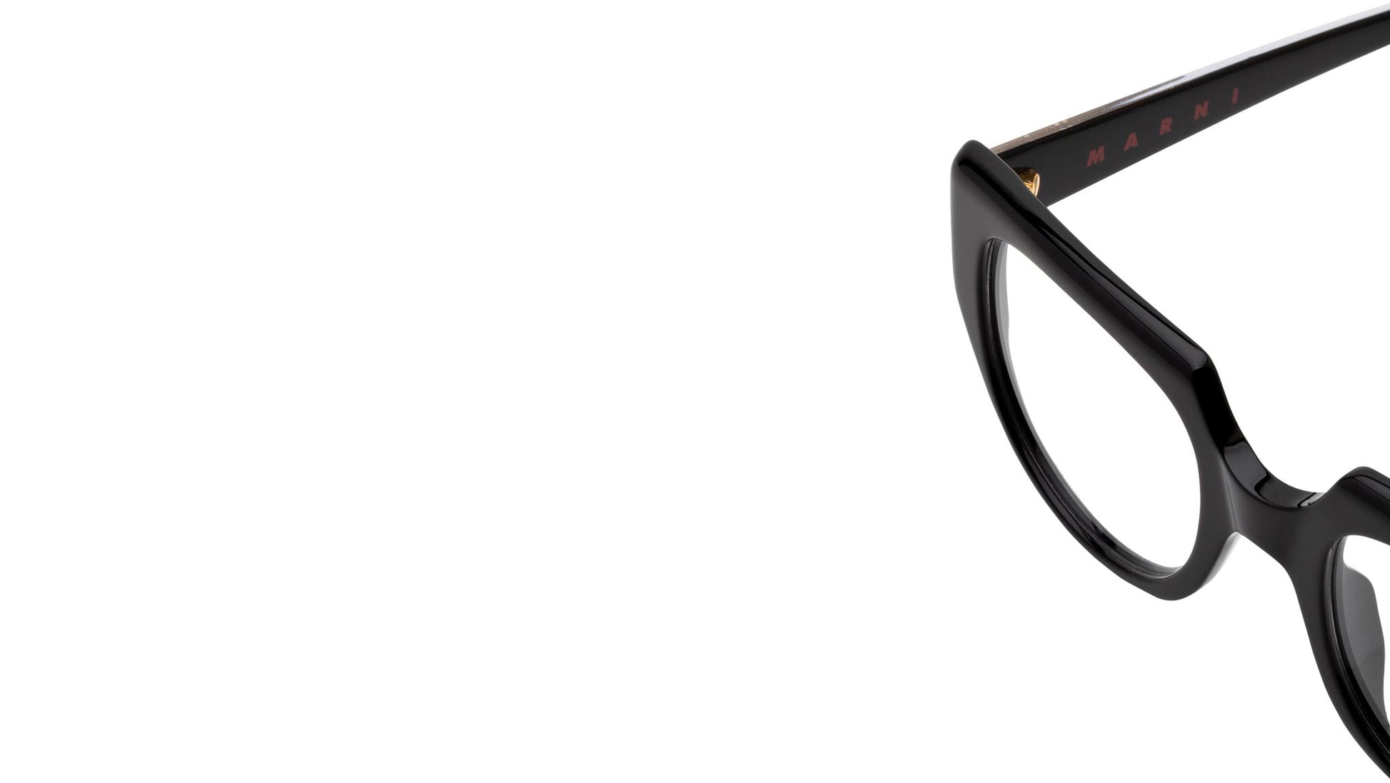 Low bridge fit. Designed exclusively for Marni, Uluru is a sturdy Optical silhouette characterised by unique geometries and asymmetrical design features. The model blends squared detailing with carefully rounded curves for an innovative aesthetics. Different thicknesses are placed in strategic areas for extra strength, a strong brow-piece is matched by slender rims on the lower part of the frame. This is a sophisticated model that captures Marni’s quirky approach to style. This version is available in shiny black acetate. Sizes: R / R Lens Width: 53 mm. Frame Front: Frame Side: 145 mm. Product Code Size R: 0M5 Product Code Size R: 2XX