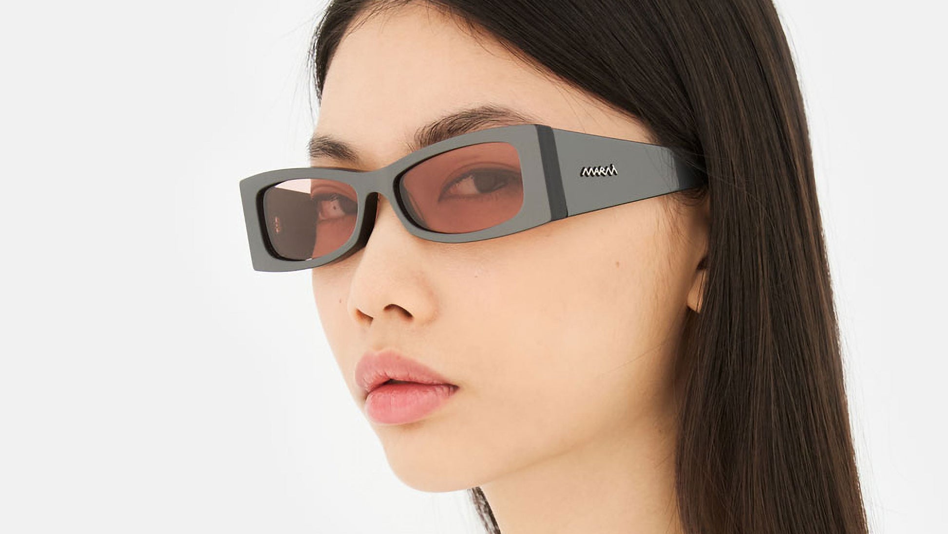 High grade Italian acetate in a refined grey. Mounting the finest Carl Zeiss playful dark pink lenses in base 4. Premium eyewear handmade in Italy. Sizes: R. Lens Width: 56 mm. Frame Front: . Frame Side: 145 mm. . Product Code Size R: SEI.