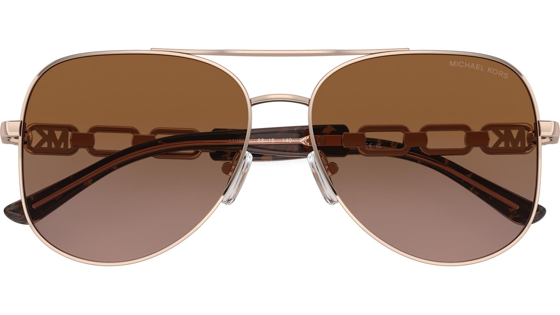 Michael Kors sunglasses for women model 1121 Chianti featuring rose gold full rim metal frame and base 4 brown pink gradient lenses. Adjustable nosepads. Frame line: Modern Glamour. Brand code: 0MK1121. Color code: 110813. Authorised Michael Kors Eyewear Online Reseller. Your glasses will come including the original case and accessories and will be covered by 12 month global warranty.
