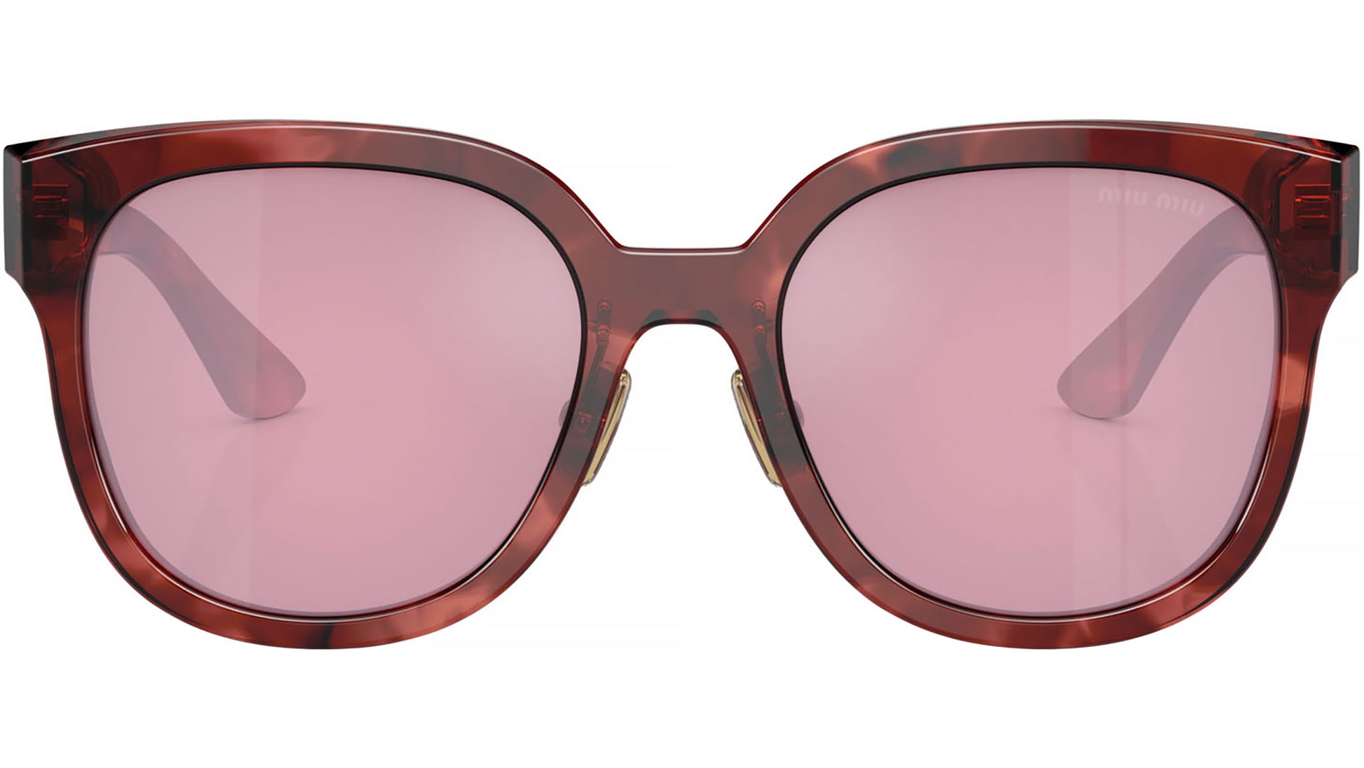 Miu Miu Immediate sunglasses collection model MU 01ZS striped garnet full rim square acetate frame with bordeaux lenses. Product code MU01ZS, color code 12Q50D. Miu Miu sunglasses are the epitome of chic and sophisticated fashion. The line showcases unique and avant-garde designs, featuring bold frames, vibrant colors, and intricate detailing.