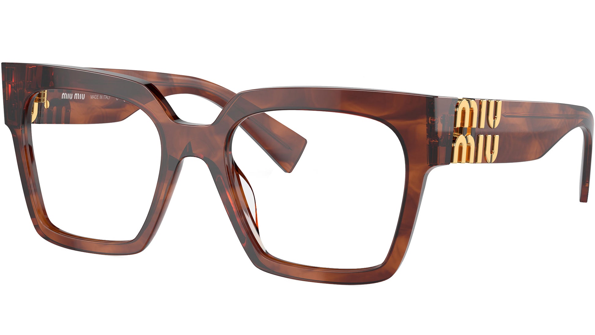 Miu Miu eyeglasses for women model 04UV featuring striped tobacco full rim acetate frame and base 4 curve demo lens. high bridge fit. Frame line: Irreverently Sophisticated. Brand code: MU04UV. Color code: 11Q1O1. Authorised Miu Miu Online Reseller. Your glasses will come including the original case and accessories and will be covered by 12 month global warranty. The glasses from Miu Miu eyewear collection are unique creations, the result of the constant stylistic research and skillful craftsmanship of the brand. A unique blend of playful experimentation and rich detailing that perfectly embodies the stylistic codes that have always characterized the Maison.