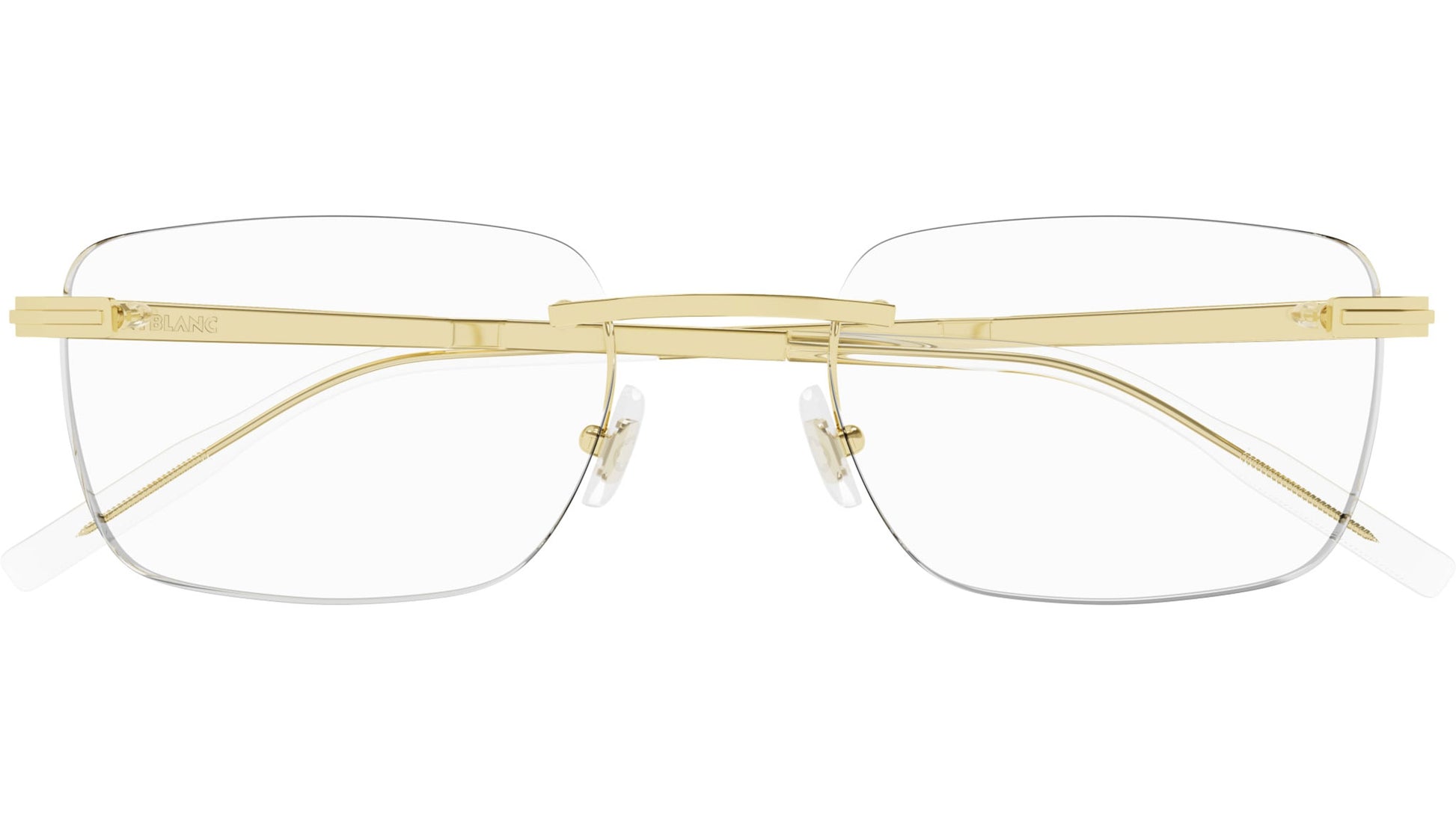 Montblanc Established optical collection model MB0279O color code 002 featuring shiny light gold frame and gold temple.