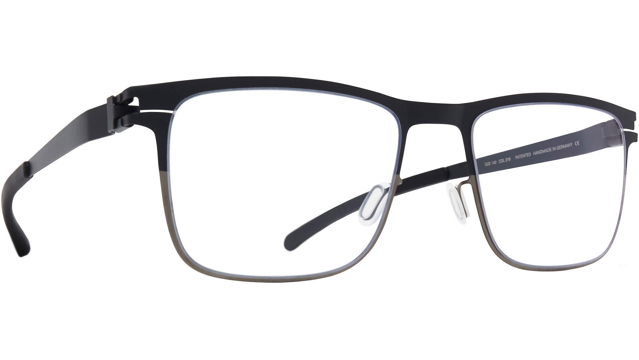 Mykita ARMIN glasses for men, featuring shiny graphite / nearly black squared stainless steel frame and demo lenses. . Brand line: NO1. Style code: 10066992. Color code: SHI. Made in Germany. Authorized Mykita online reseller. Your glasses will include the original case and accessories and are covered by a 12-month global warranty.