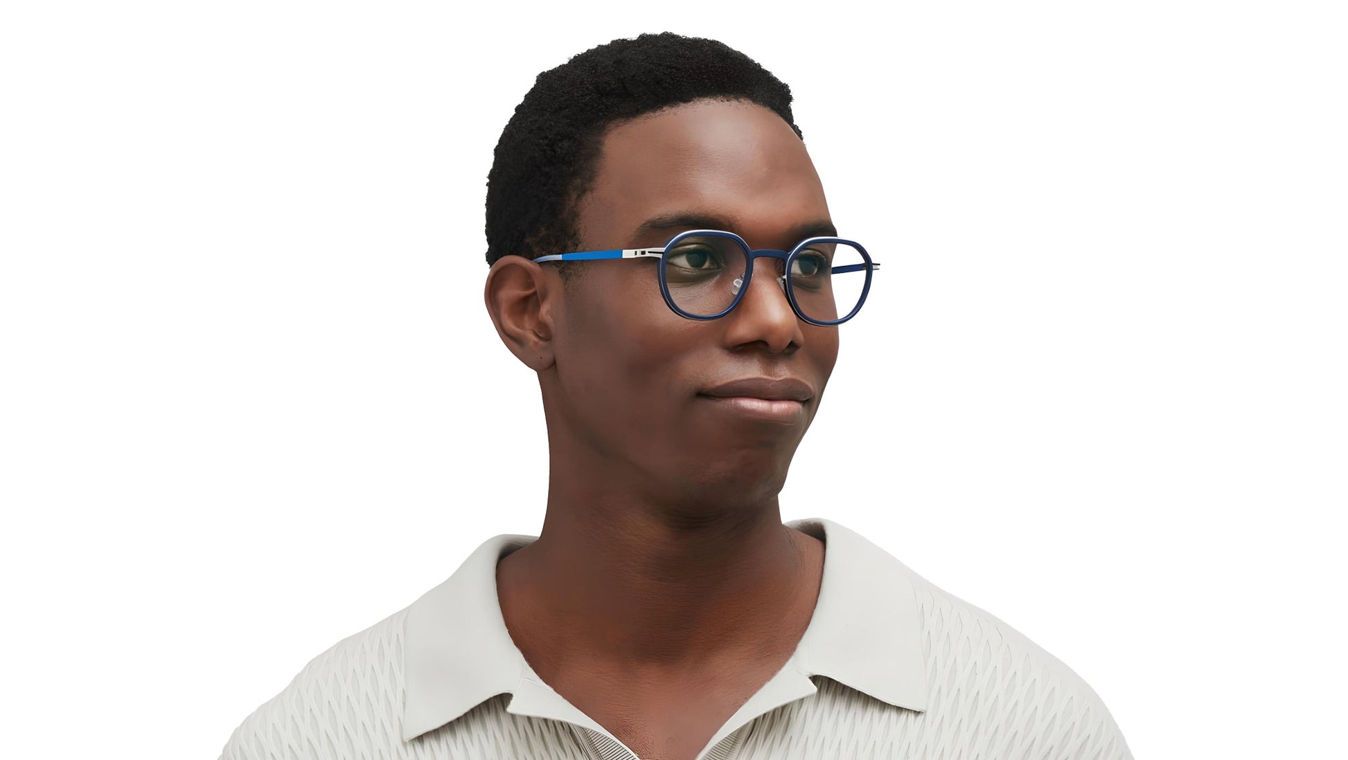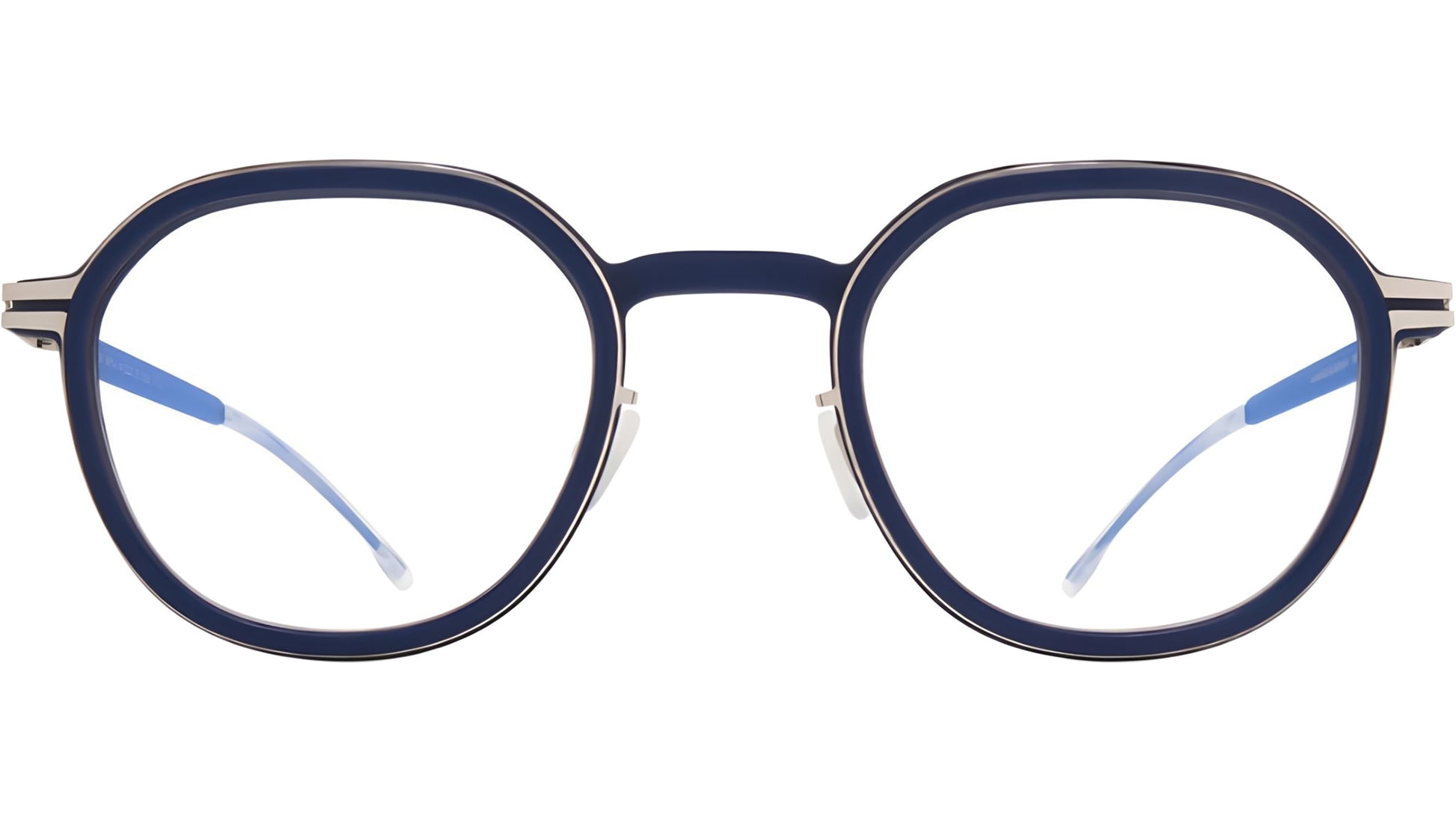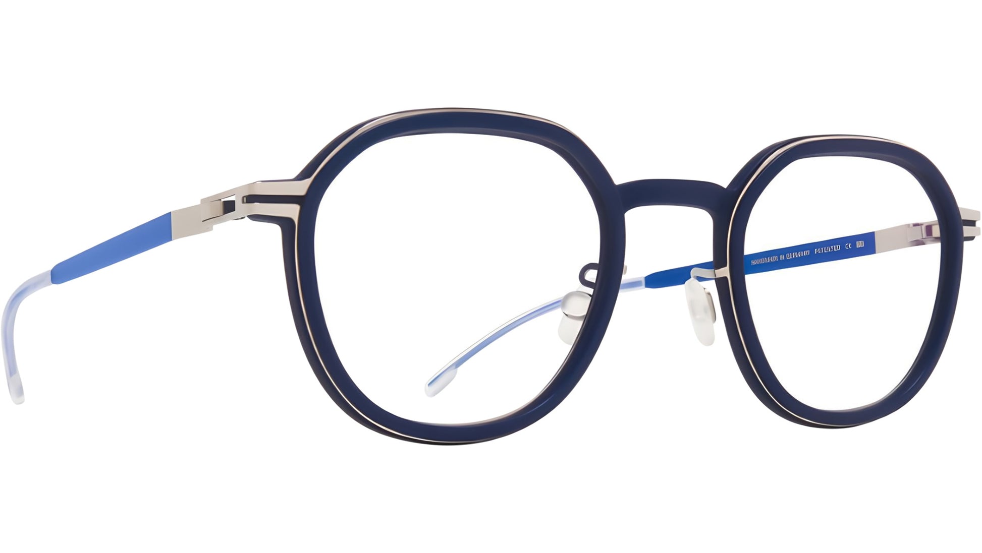 Mykita BIRCH 628 glasses for men and woman, featuring navy / shiny silver / yale panthos nylon frame and demo lenses. Eyewear design at the cutting edge of 3D printing technology: MYKITA MYLON is shaping the future of high-tech eyewear through innovative engineering and trend-setting design. MYLON® is an award-winning material innovation from Modern Manufactory, renowned for its adaptability, exceptional lightness and durability. The range of styles expresses the design freedom of this high-tech material, including the HYBRID line, which combines stainless steel with MYLON® for a uniquely sophisticated aesthetic. Brand line: MYLON. Style code: 10084943. Color code: 628. Made in Germany. Authorized Mykita online reseller. Your glasses will include the original case and accessories and are covered by a 12-month global warranty.