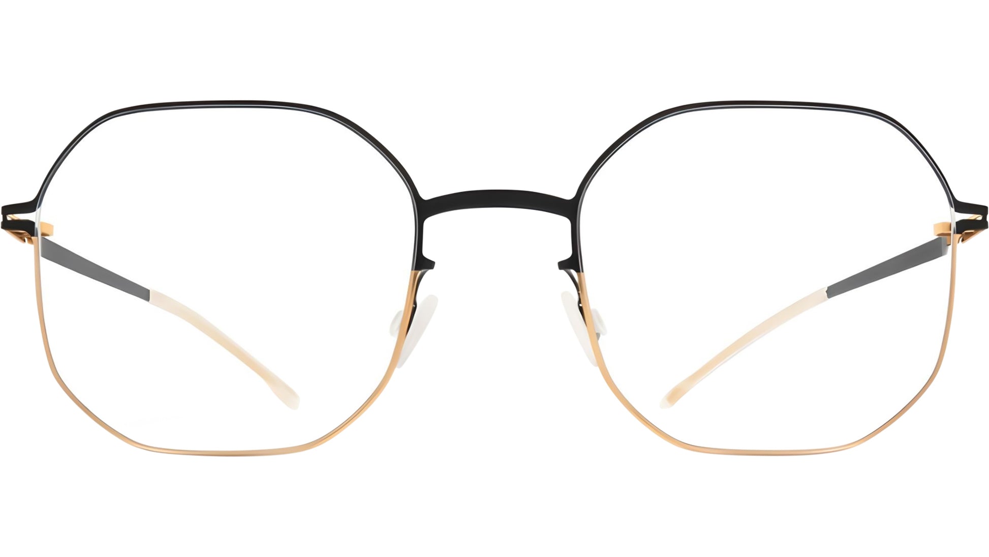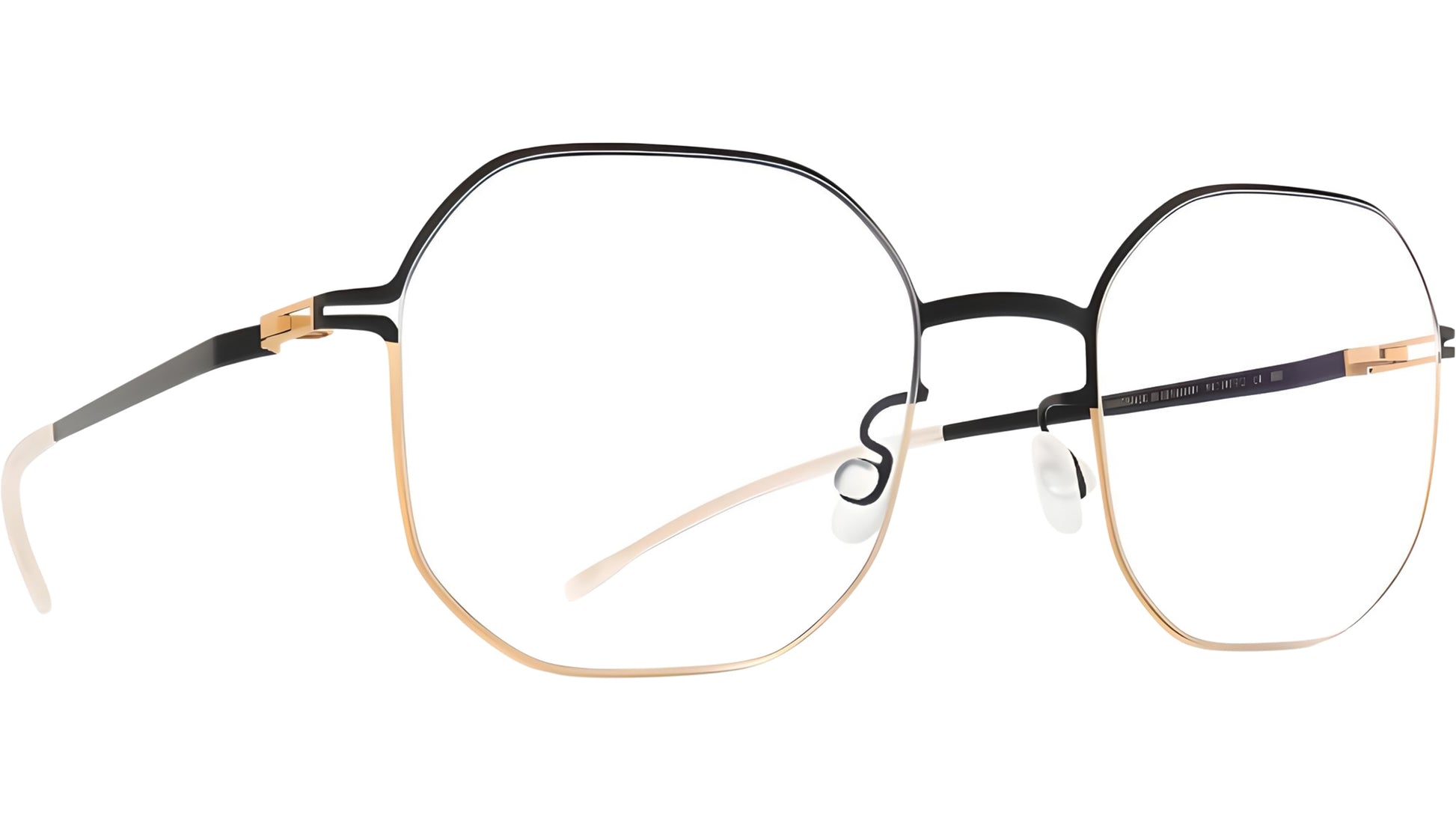 Mykita CAT 167 glasses for men and woman, featuring gold / jet black butterfly stainless steel frame and demo lenses. The LITE collection embodies modern minimalism with contemporary shapes and balanced constructions that offer exceptional comfort and refined aesthetics. Featuring pure stainless steel frames and mixed material models with acetate elements, the collection is defined by slim 3mm steel temples and a distinctive spiral hinge. Brand line: LITE. Style code: 10086027. Color code: 167. Made in Germany. Authorized Mykita online reseller. Your glasses will include the original case and accessories and are covered by a 12-month global warranty.